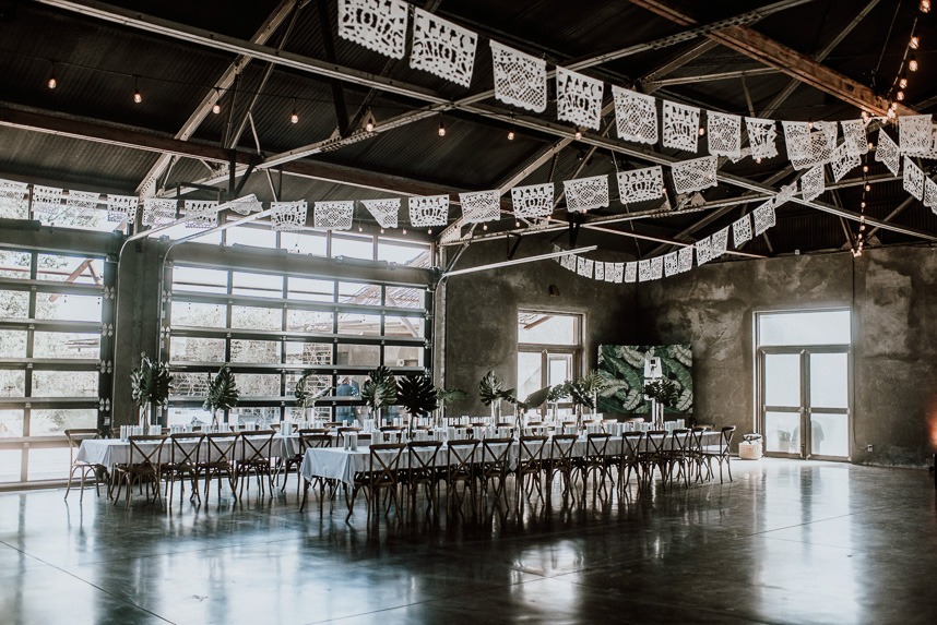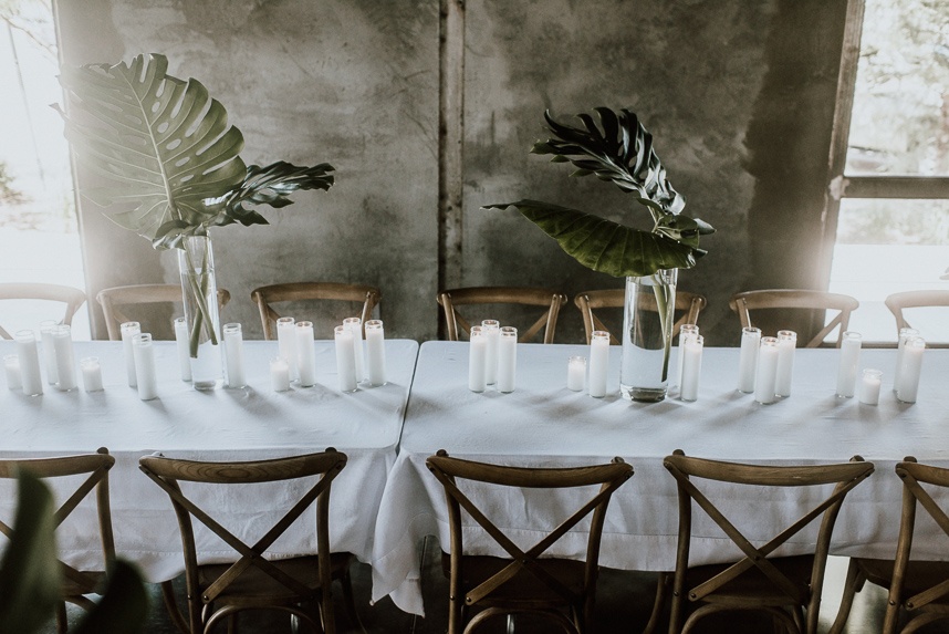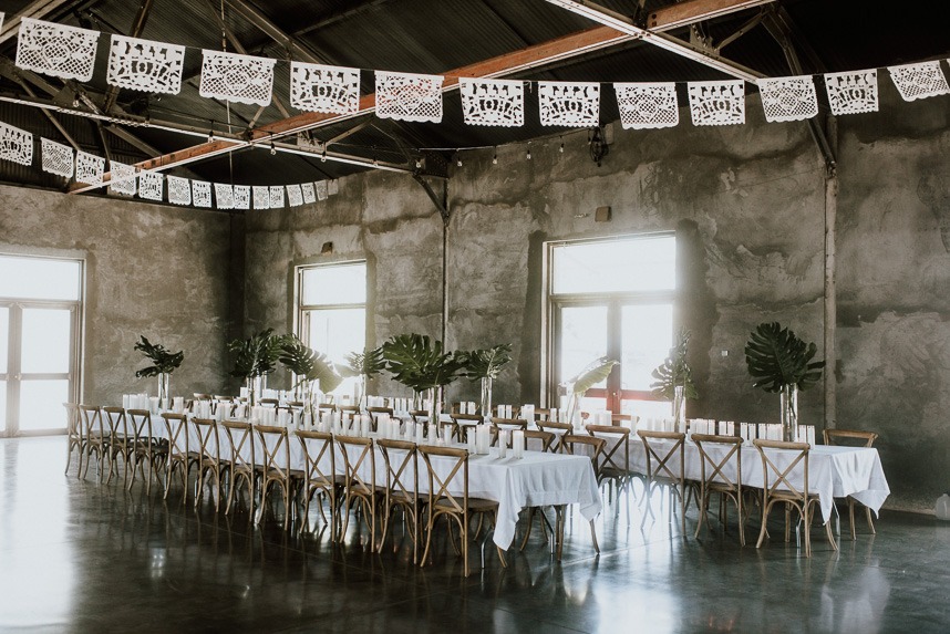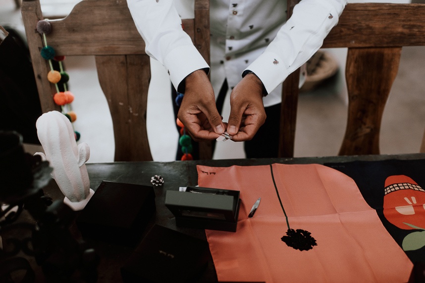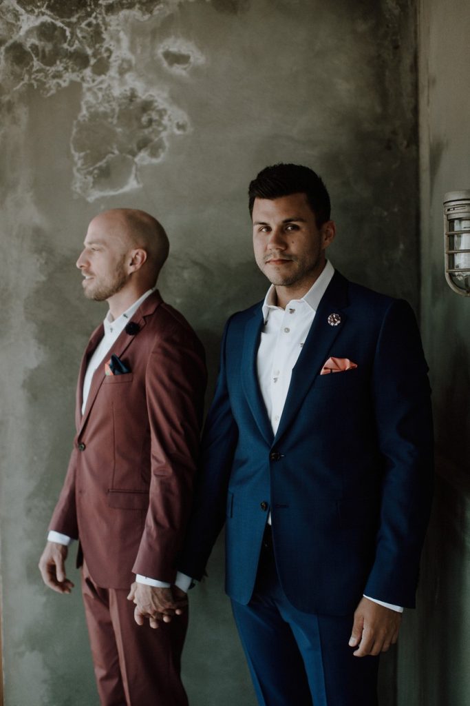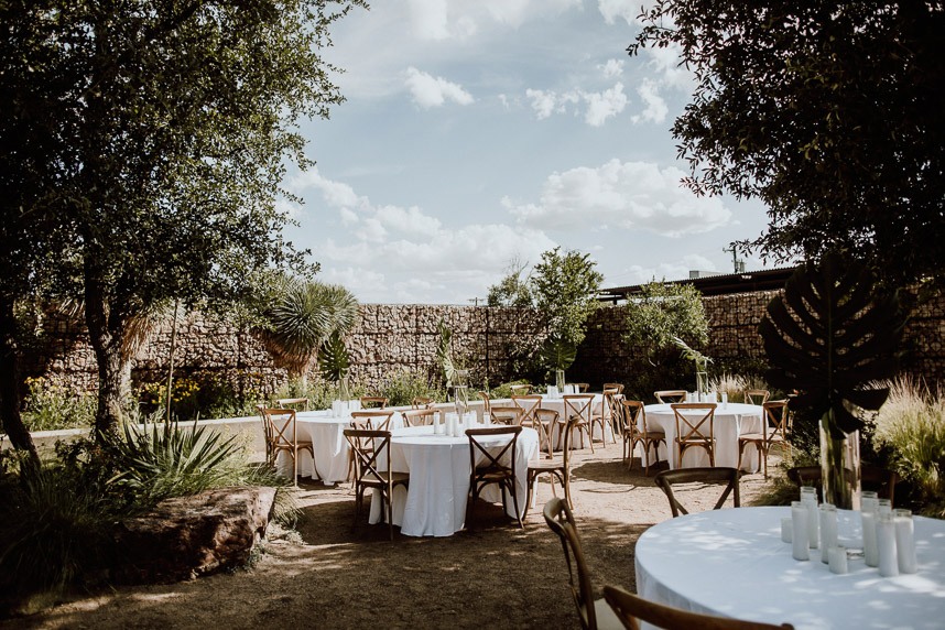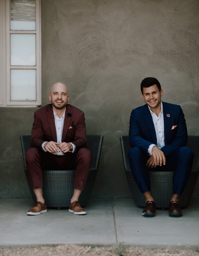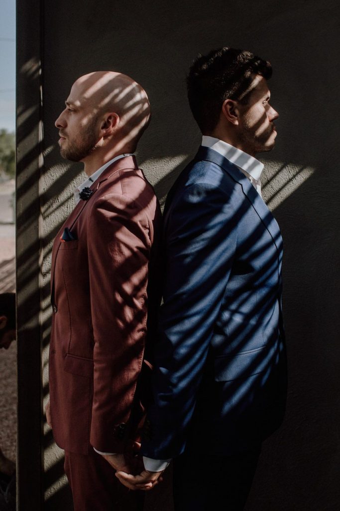 Manuel and Colt were married in an eclectic Texas celebration, captured by the incredible Houston wedding photographer Joseph West Photography. Wanting to share their favorite place with their favorite people, the couple opted for an intimate gathering of their closest friends and family, with a ceremony in the desert and a reception to follow in the Thunderbird Hotel’s Capri venue. Crisp white linens and large monstera leaves contrasted with the industrial concrete walls with natural light pouring in and banners hung overhead, transforming the space into something both stunning and inviting. Both Colt and Manuel incorporated touches that reflected their personalities and upbringings, from their accessories and different colored suits to a variety of desserts and a mariachi band for entertainment. Every boho detail of this eclectic Texas wedding inspires us to dream big and embrace the idea of a destination wedding right here in Texas. Cheers to this dapper couple!