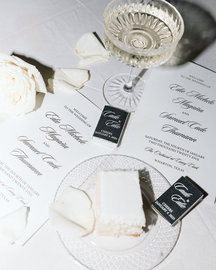 The timeless beauty of Edie and Cade’s black tie wedding at The Orchard at Caney Creek was simply breathtaking! Edie looked absolutely radiant thanks to the talented Blooming Beauty Company. It was a perfect day from start to finish. And yes—ending the night with a spontaneous late-night snack run (in full wedding glam!) was the cherry on top!