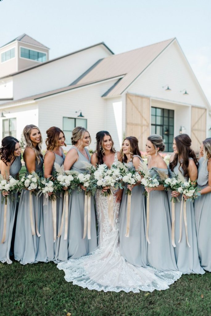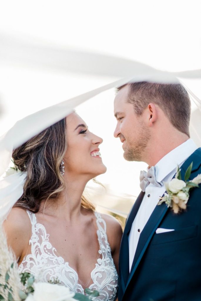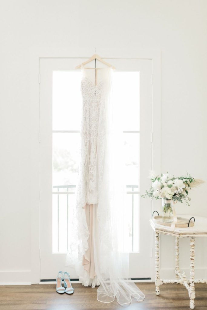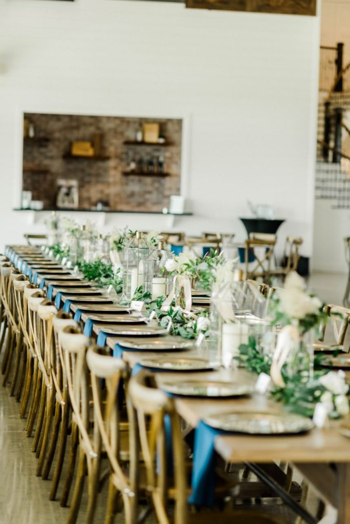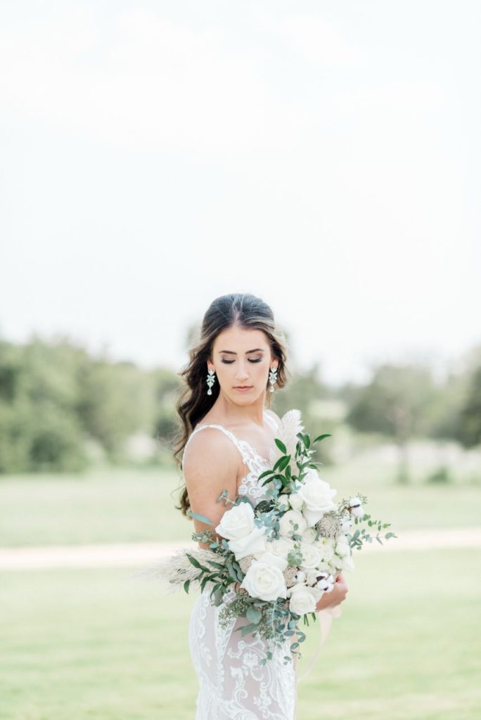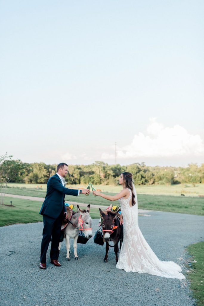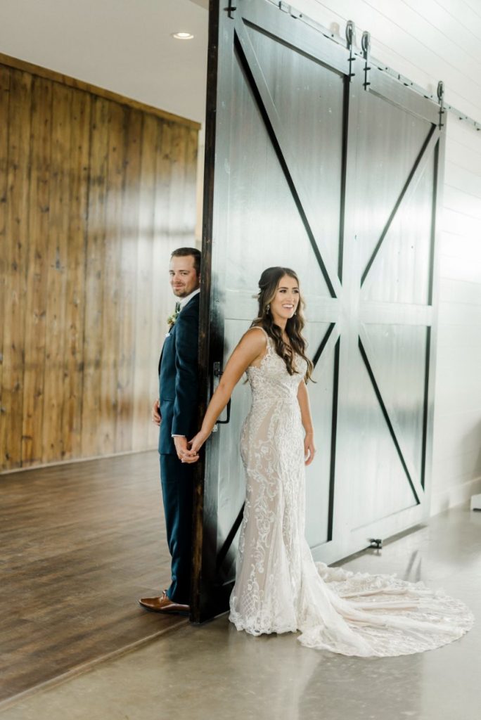 Katelyn and Blake are so in love, they got hitched twice – once in a COVID ceremony of immediate family only and then again in this elegant farmhouse wedding captured by Rachel Driskell Photography! In a simplistic day accented subtly with boho florals and textures, this couple celebrated with extended family and friends alike. Having to change their original plans due to COVID-19 and planning a wedding in the middle of a pandemic, they didn’t exactly know what to expect. Now in their Brenham, Texas-set elegant farmhouse wedding, a palette of navy, gold, and white washed over the venue in tasteful tidbits of understated design shrouded with greenery. Katelyn looked too good to be true in a formfitting Wtoo by Watters gown from Bridal Boutique Lewisville, covered in opulent beaded lace and paired with a dreamy veil that she wore down the aisle to the start of their forever. Though it’s easy to get lost in the craziness of it all, these two managed to keep each other grounded and never lost sight of the true purpose of the day. “The most important thing about the wedding was getting to marry my now-husband,” says Katelyn. “When it came down to the day none of the little details mattered to me.” The details in their delicate day were almost too precious for our hearts to take! Katelyn and Blake even incorporated a little fun with beer burros and more. See it all in their gorgeous elegant farmhouse wedding gallery down below. Plus, read on for a note from the bride about one of her favorite wedding day memories. Cheers to the Kopetskys!