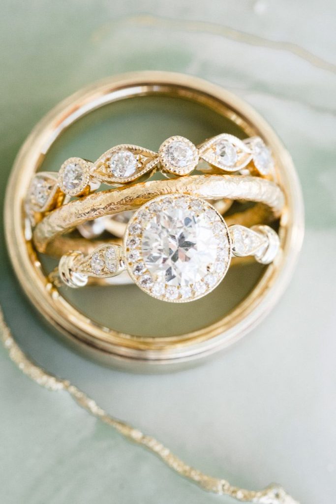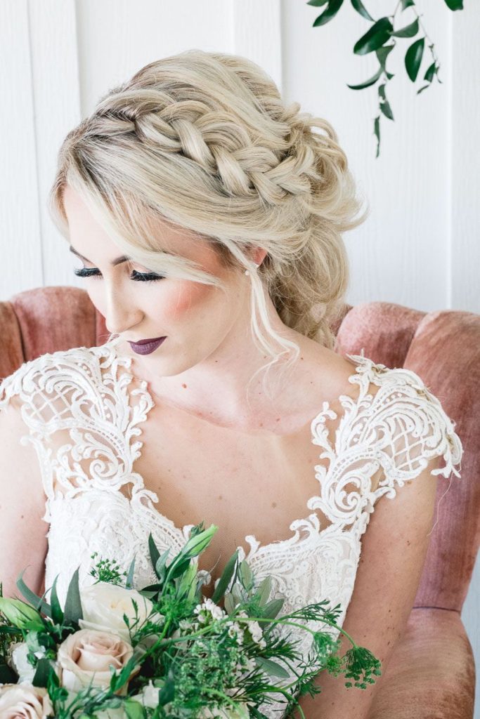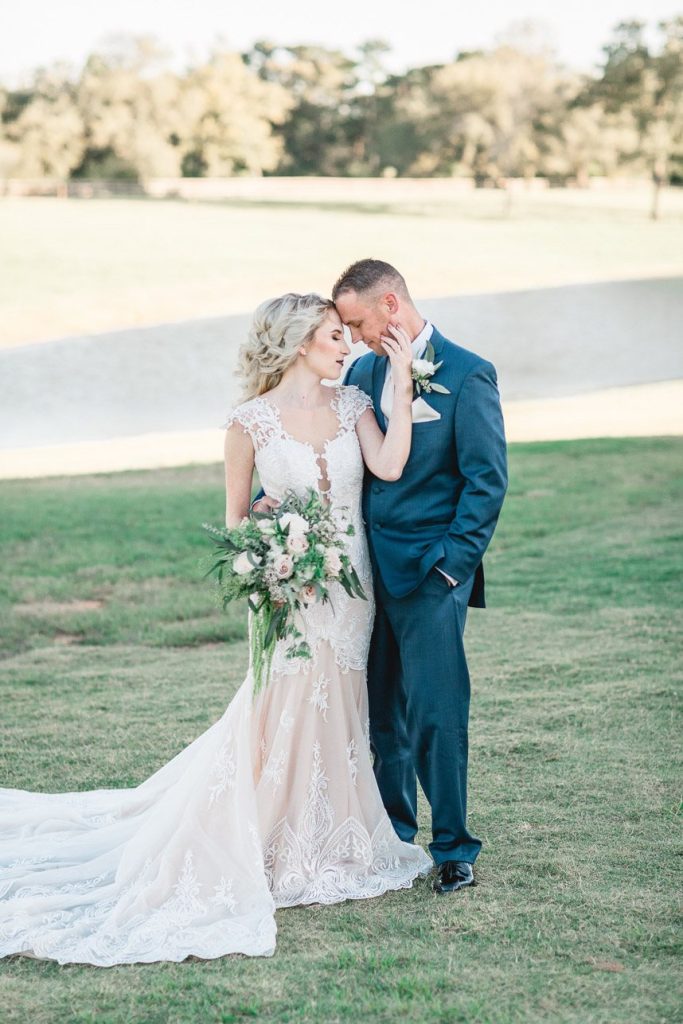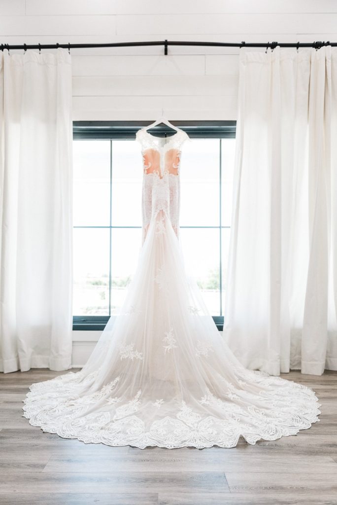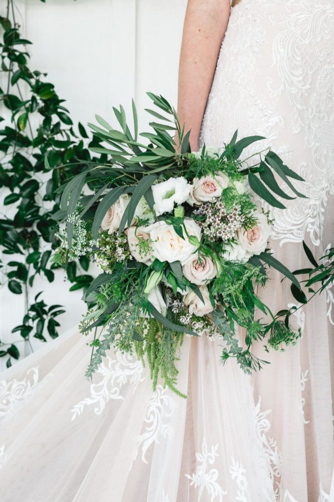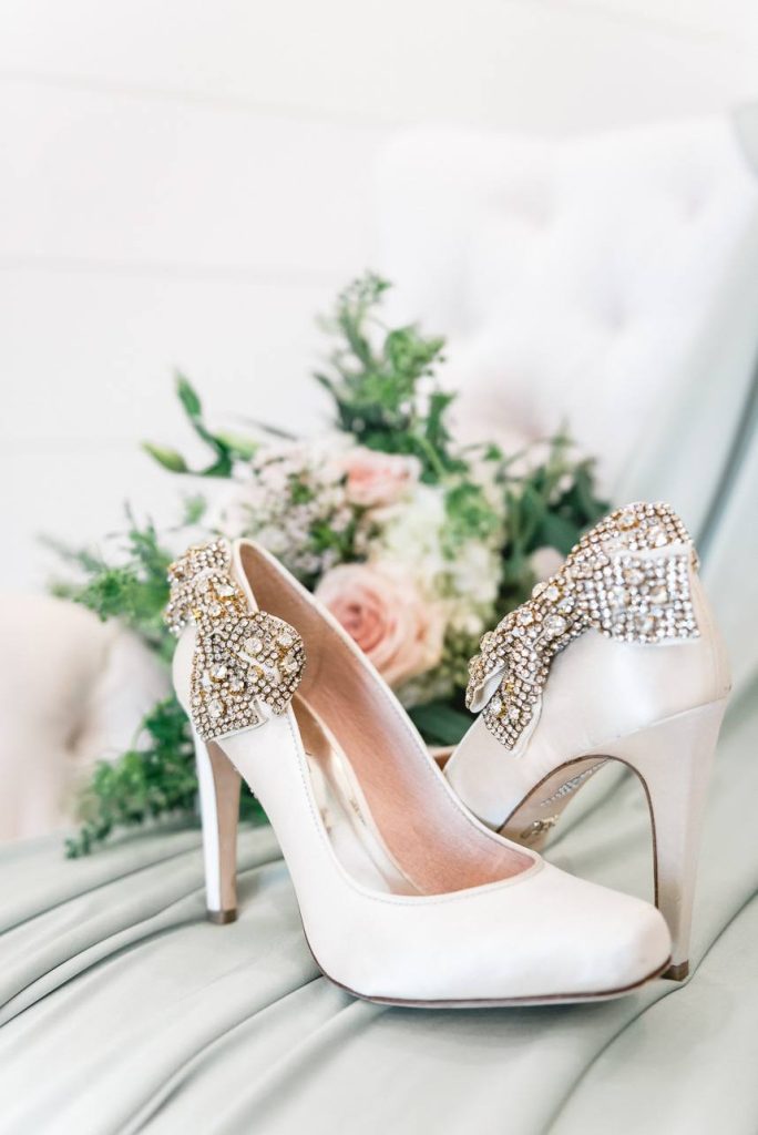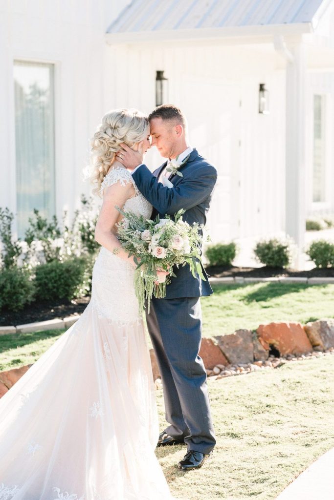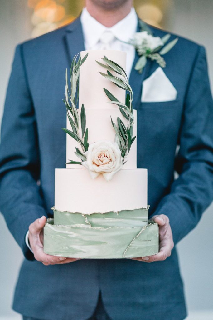 There’s nothing like a fresh take on a classic wedding palette that can make our hearts skip a beat, and this elegant mint farmhouse styled shoot is no exception! Planned and styled by Rachel May Weddings, the crisp white walls of The Farmhouse wedding venue made the perfect backdrop for shades of mint and light blue alongside pops of green – the perfect combination for spring! Gold elements tied everything together, from the tablescape to the cake setup to the jewelry. The model bride’s stunning lace gown with an illusion back from Whittington Bridal is accentuated by her romantic braided updo and dramatic look from Hey Doll Beauty. The marble cake, luscious greenery table runner, candlesticks, sweetly embroidered napkins and string lights hung above are some of our favorite touches of this darling styled shoot! Cheers to springtime!