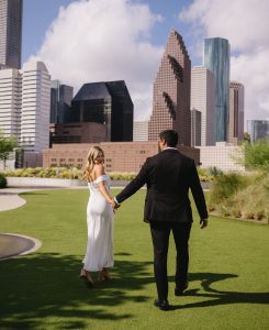 There are so many local Houston engagement photographers and different types of photography! The best place to start is to find photographers who specialize in wedding and engagement shoots (here’s our preferred list). From there, check out the photographers’ websites to find a style you like and check the amount they charge for engagement shoots and day of pictures – this likely will require a direct inquiry on their site or via email. Once you have narrowed it down, check the availability of different photographers, and see who works best with your wedding date.