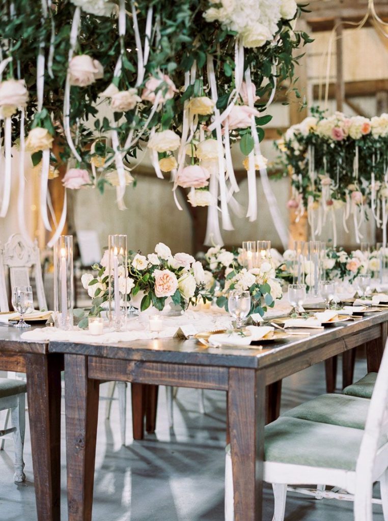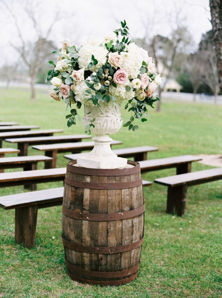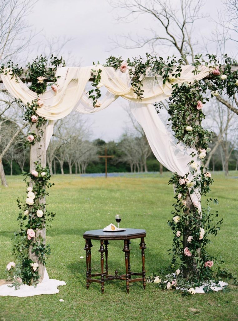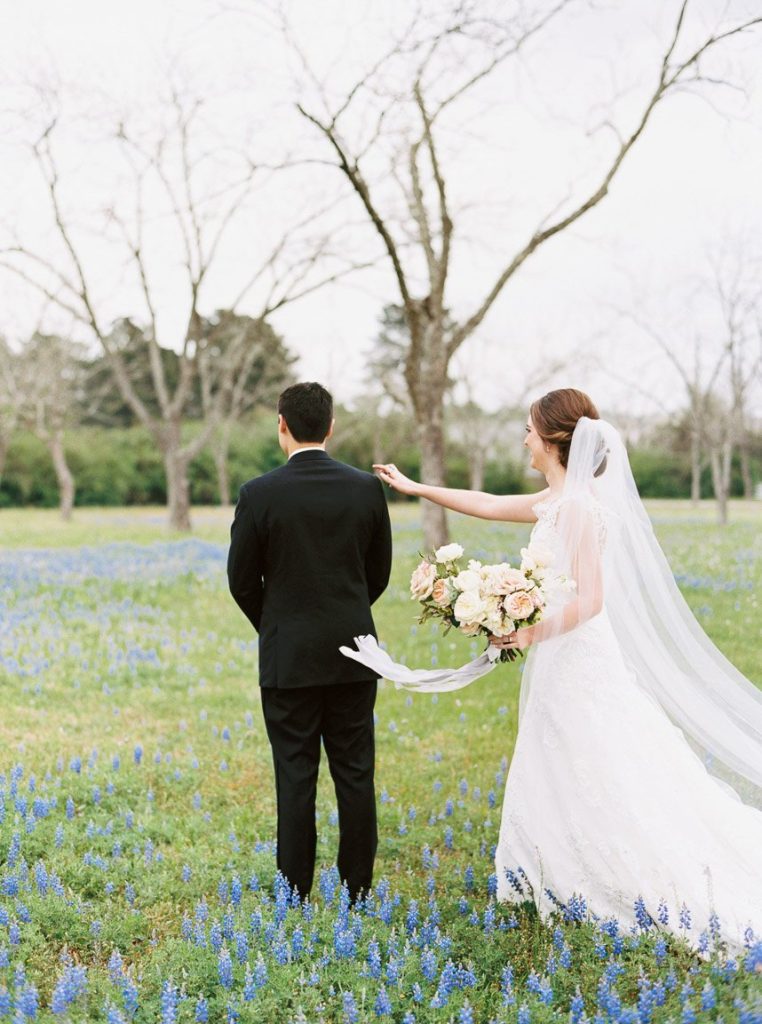 There’s nothing quite like a wedding filled to the brim with romantic blooms, and this English garden inspired wedding was a springtime celebration like no other! Hannah Mayson beautifully captured Meredith and Justin’s big day at Chandelier Grove, with the ceremony location flanked by an incredible altar from Maxit Floral Designs in hues of blush and cream to accentuate the natural beauty of the venue’s outdoor space. Invitation Solutions designed a classically elegant invitation suite, and guests were treated to catering from Behind the Bash as well as dessert from Cakes by Gina: what a delicious combination?! Be sure to scroll through to see the couple’s gorgeous portraits shot amongst classic Texas bluebonnets, and read about a fun detail Meredith and Justin incorporated as a fun way to welcome guests while giving a nod to how they met!