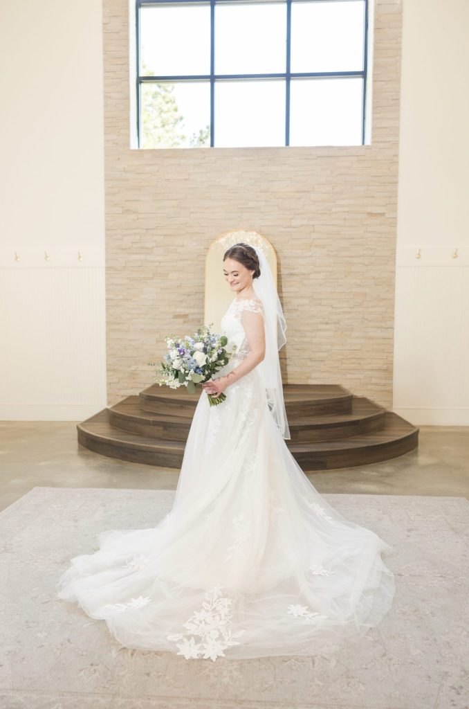 Erin and Seth’s modern spring wedding unfolded beautifully at the Grand Pines Reserve. Delicate touches of light blue enhanced the contemporary design, crafting an atmosphere that felt both fresh and sophisticated. The day flowed effortlessly, a testament to the exceptional planning and meticulous attention to detail by Vow and Voyage. Adding an extra layer of heartwarming charm, Seth’s beloved dog played a special role in every cherished moment, from the ceremony aisle to the joyous energy of the reception. It was a celebration of modern love, made even sweeter by their furry family member!