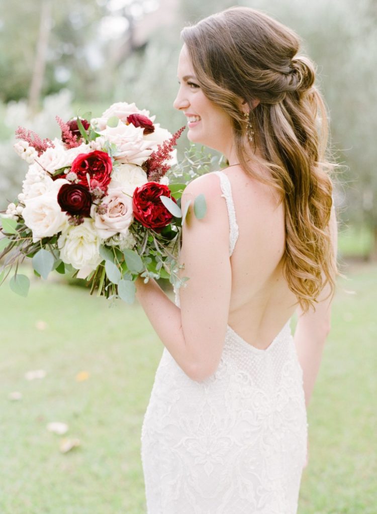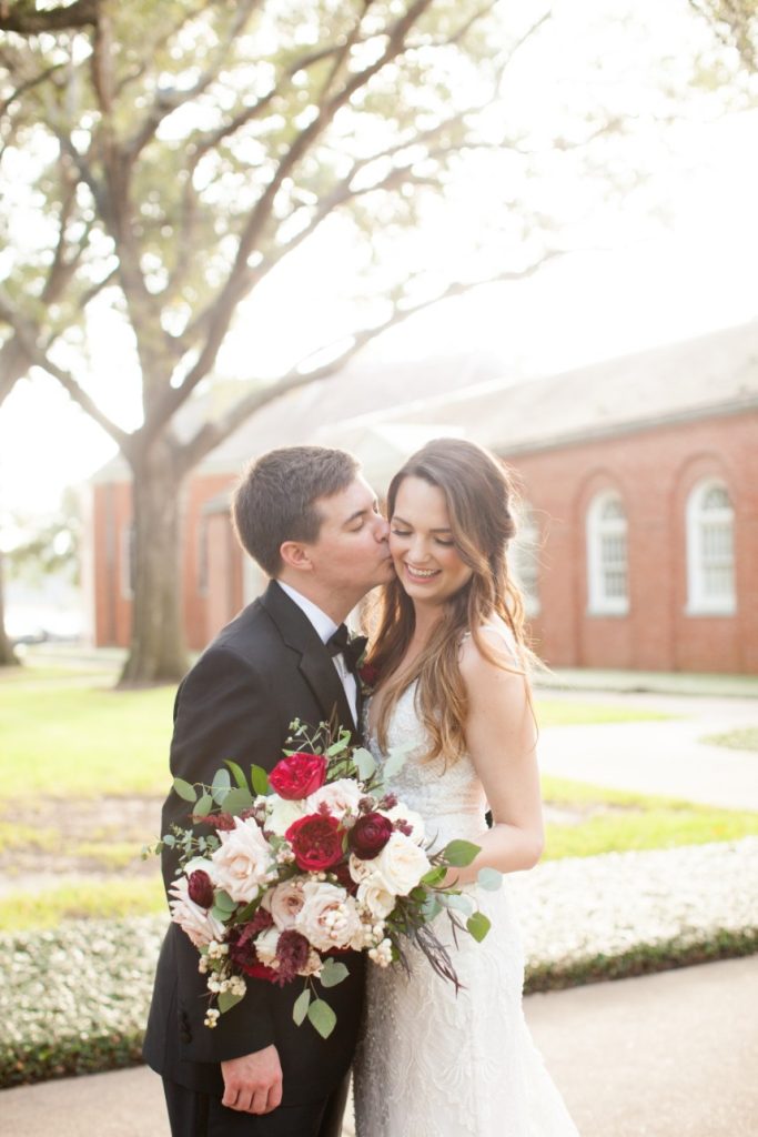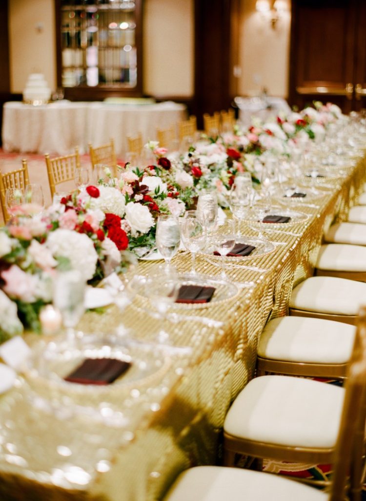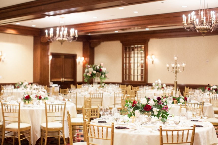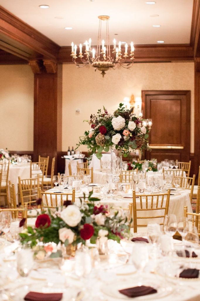 The Houstonian Hotel was the perfect stately wedding venue for Marsha and Jeff’s fall ballroom wedding, and we’re so thrilled to share the gorgeous photos captured by Houston wedding photographer Kelli Durham! Events by Sarah was the couple’s wedding planner extraordinaire and made sure everything was beautiful and ran so smoothly. The elegant ballroom was dressed in the most beautiful red and white florals alongside luxe gold linens and dinnerware. Take a peek! Cheers to this sweet couple!