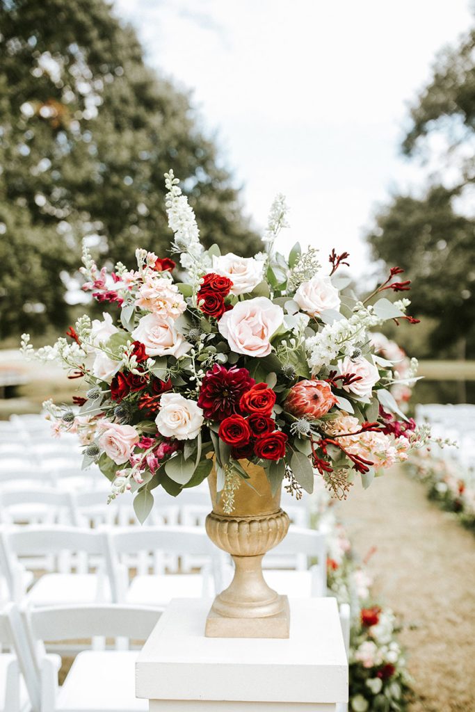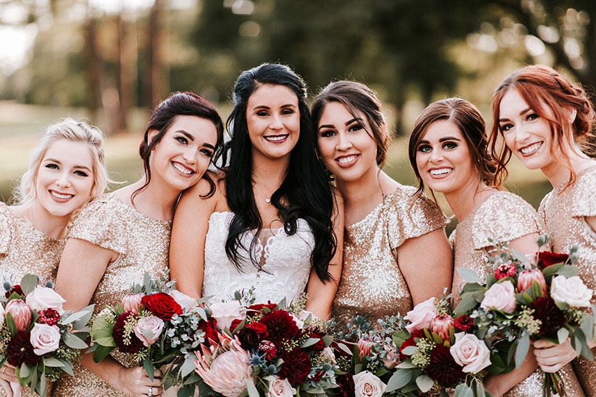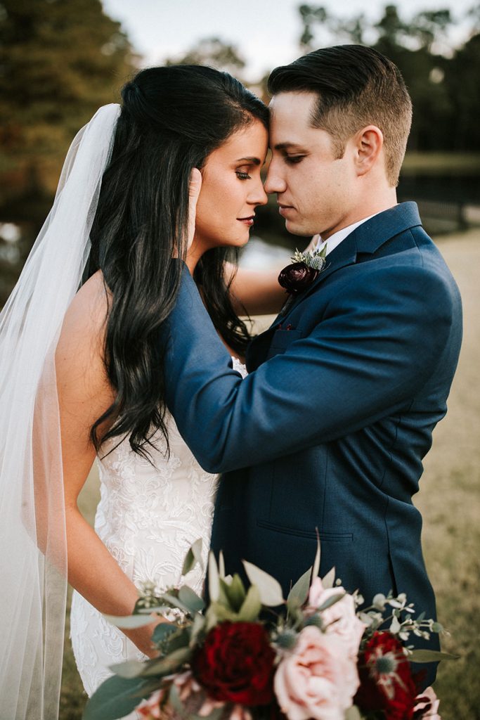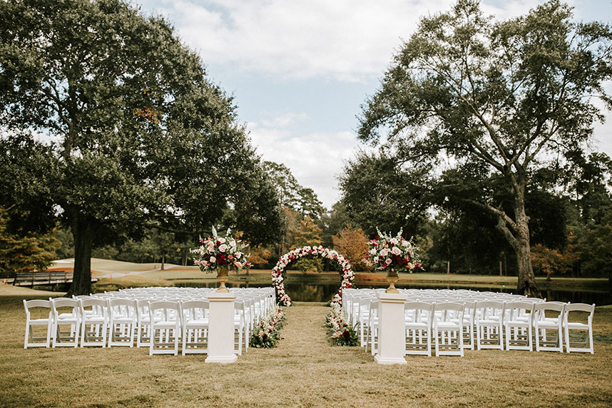 Brittany James and Hunter Haley’s pretty fall country club wedding at The Woodlands Country Club is cozy and and elegant! The couple’s stunning round floral altar arch set the tone for their oh-so-beautiful wedding celebration. From the seasonal florals in both neutral and rich ruby hues and the touches of sparkle in the linens from EB Inc. Event Rentals and bridesmaid dresses from Brickhouse Bridal – see every beautiful detail captured in photos and the sweetest wedding video below, both captured by Bay Productions! Enjoy!