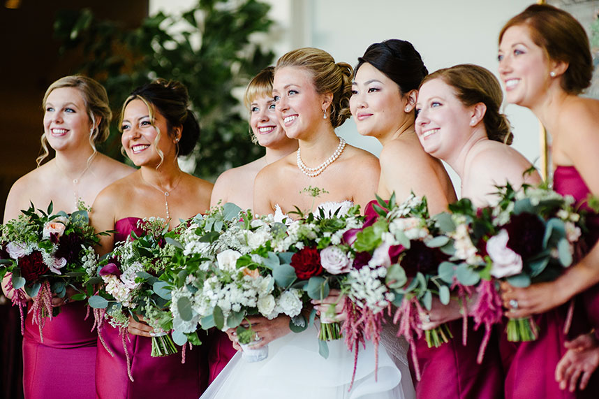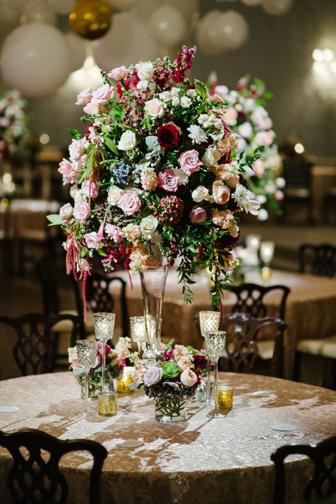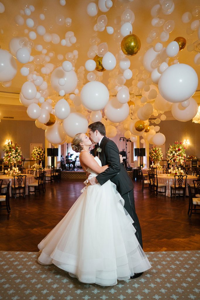 If you’re planning a fall ballroom wedding you’ve got see the gorgeous florals Plants N’ Petals created for Taryn Cheesman and Dr. Corey Hryc’s moody country club wedding! The way they cascade from the ceiling mingling with the balloon installation is so romantic and such a must see! Cheers to this Taryn and Corey!