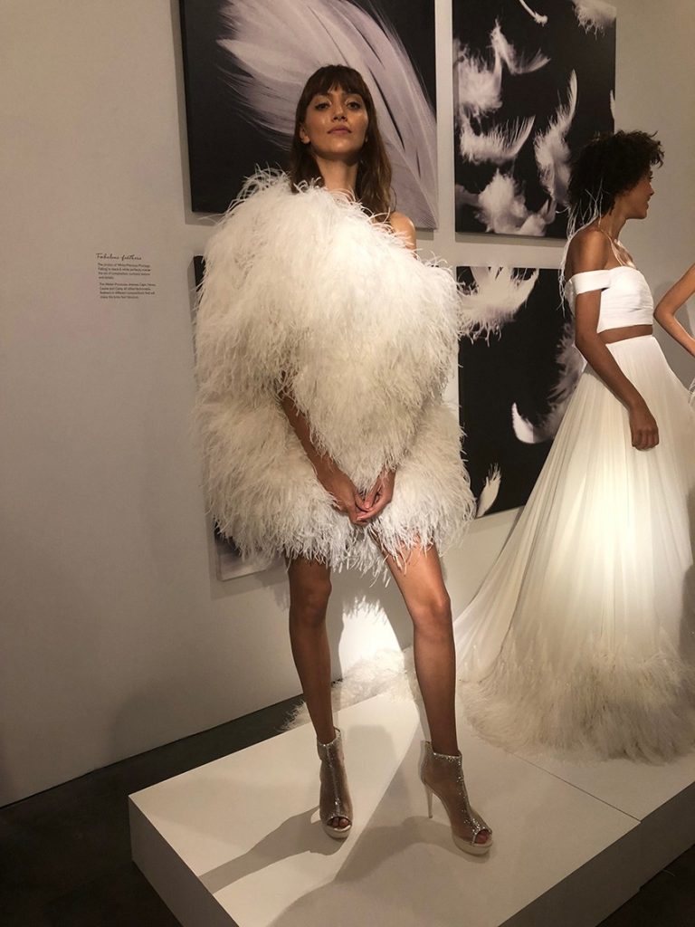 From dainty sleeve embellishments to full-on feather skirts, this light and airy design staple made a mega return this season in every way imaginable. While some designers tread lightly, others dove head-first in embracing the trend by creating looks that capitalize on the fluid movement of feathers in motion, exampled in this one shoulder mini from Pronovias. Be on the lookout for the arrival of the new collection in The Princess Bridal, Stephen Grace Atelier, Brickhouse Bridal and Houston Bridal Gallery.