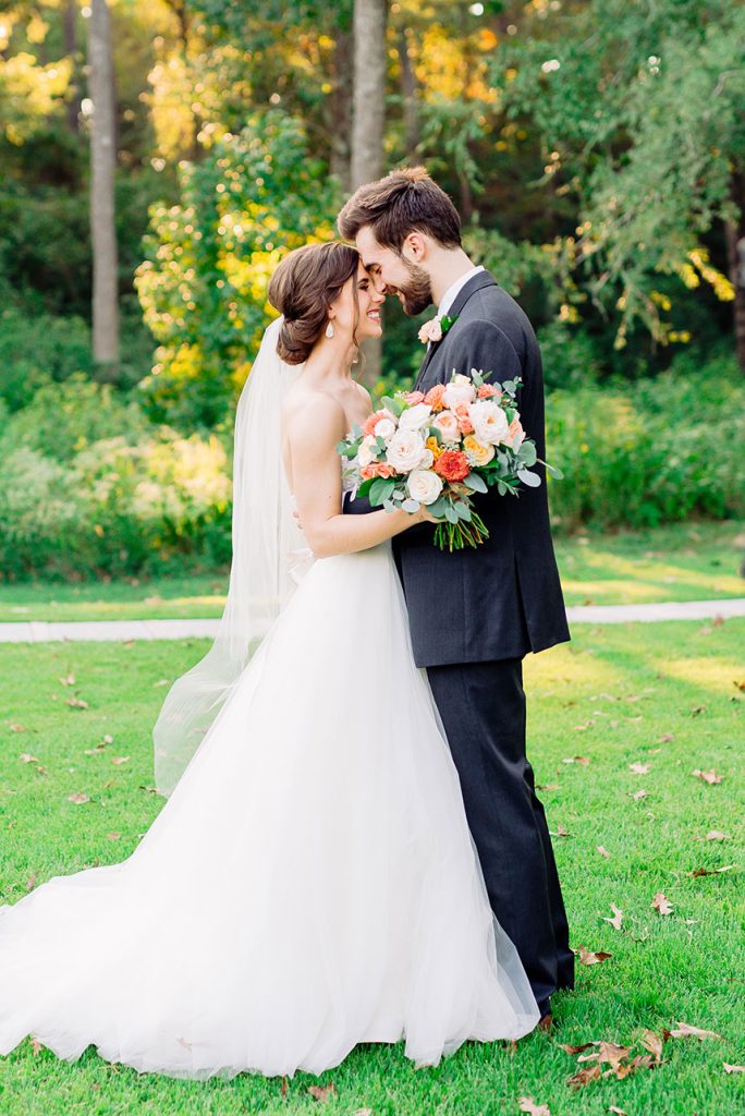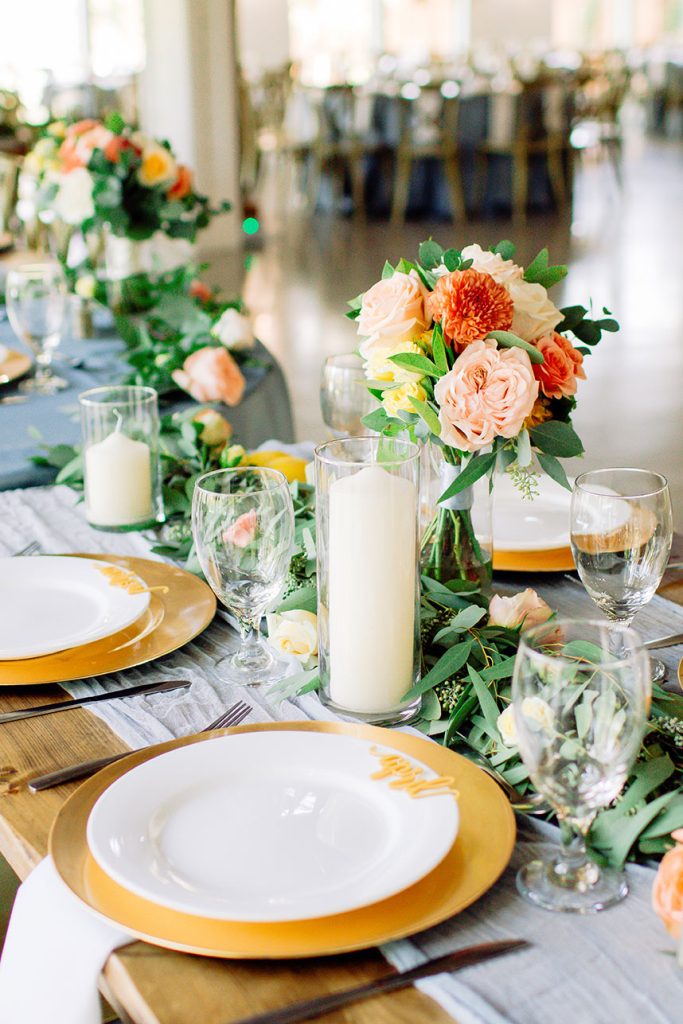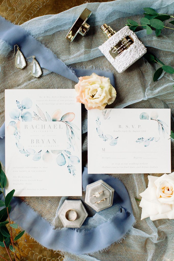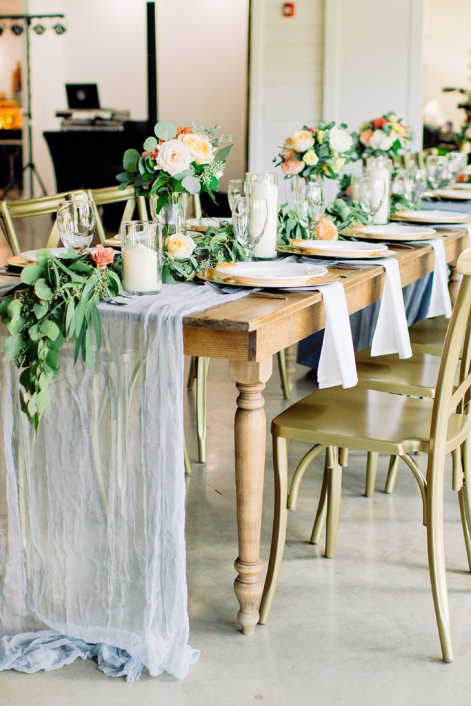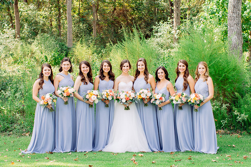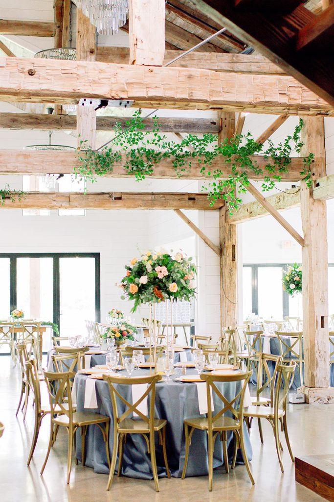This farmhouse chic wedding is one for the books! Rachael Kase and Bryan Lindsey’s wedding really wowed us – from the incredible outdoor ceremony at The Meekermark to the lovely details planned by Love Birds & Co., we know you’ll love this beauty as much as we do. With dusty blue, vibrant coral, subtle blush and buttery yellow touches, what’s not to love about the Lindsey’s wedding? There were so many incredible farmhouse chic decor pieces provided by both EB Inc. Event Rentals and Love Birds & Co., and we are totally here for it. And speaking of chic, Rachael’s classic bridal beauty from Butter Artistry is absolutely to-die-for! Her incredible hair and makeup paired flawlessly with her stunning A-line bridal gown from Brickhouse Bridal. There truly isn’t anything we don’t love about this wedding!