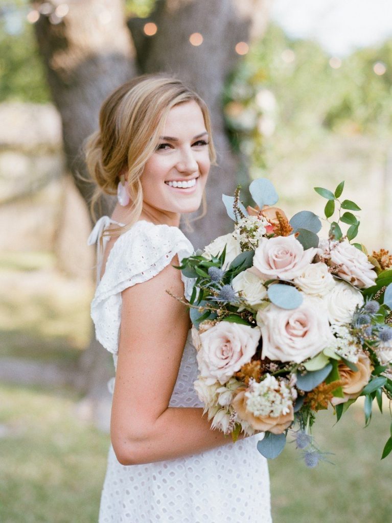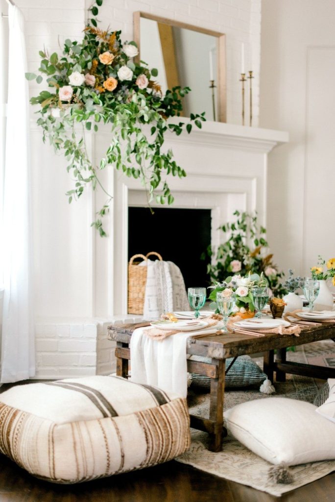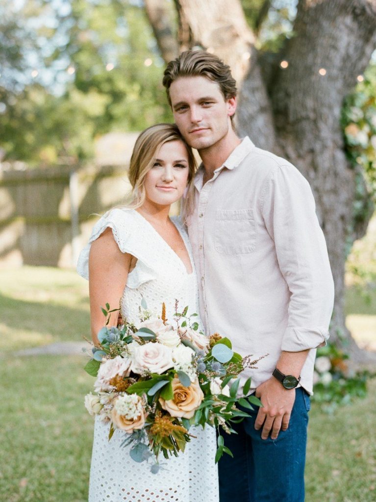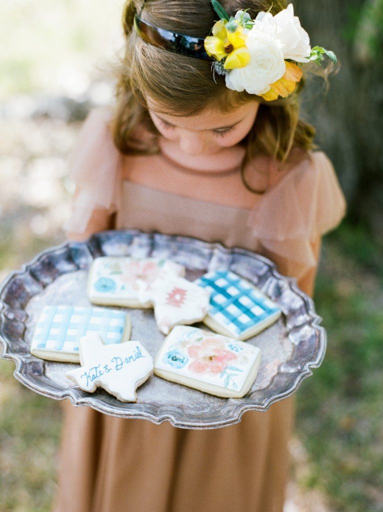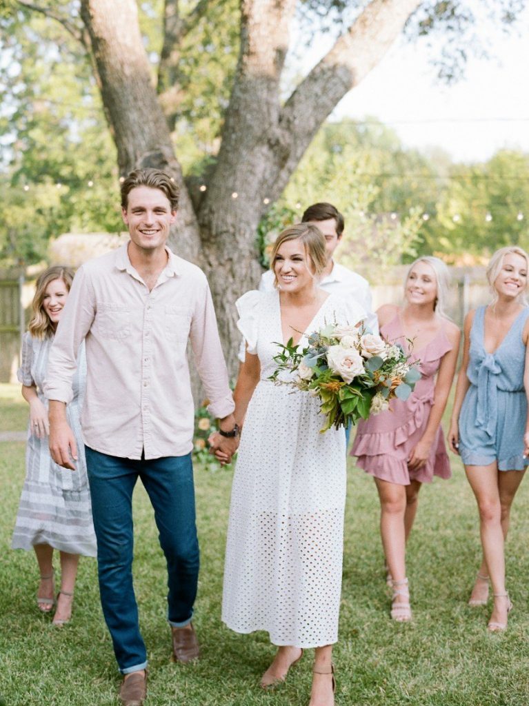 From the planner, Natalie Dawley of Two Be Wed: “This was an inspiration shoot with a real-life engaged couple and their best friends! Just two weeks ago they married in Italy. The chemistry amongst this group caught on camera was totally authentic even though it was a styled shoot. The charm of an airy Waco home, coupled with an array of impeccable farm-to-table dishes, where guests gather on a warm Texas evening makes for the the best way to celebrate love in style. Mint juleps are served outdoors as flower girls play in the grass and guests pass around appetizers and fond stories of the couple. Chef Nicole McDuffie is a menu creator at Magnolia and helped with Joanna’s recent cookbook!”