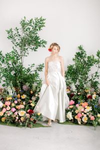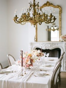 From the planner, Natalie Dawley of Two Be Wed: “This was an inspiration shoot with a real-life engaged couple and their best friends! Just two weeks ago they married in Italy. The chemistry amongst this group caught on camera was totally authentic even though it was a styled shoot. The charm of an airy Waco home, coupled with an array of impeccable farm-to-table dishes, where guests gather on a warm Texas evening makes for the the best way to celebrate love in style. Mint juleps are served outdoors as flower girls play in the grass and guests pass around appetizers and fond stories of the couple. Chef Nicole McDuffie is a menu creator at Magnolia and helped with Joanna’s recent cookbook!”