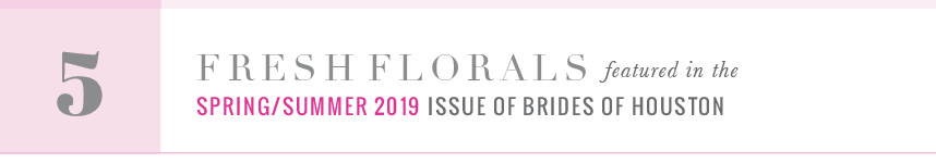 Brides of Houston followers, GET READY! Today we’re kicking off our countdown to the cover and the highly anticipated issue release! Over the next week, we’ll be sharing a sneak peek into the new issue, starting with five must-see floral arrangements fulled straight from the Spring/Summer 2019 pages. Enjoy and stay tuned for even more first looks over the next four weekdays! Cheers!