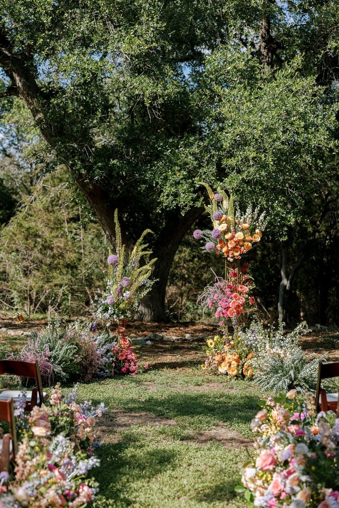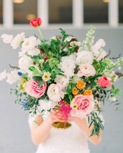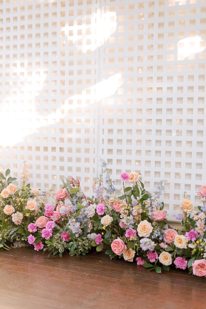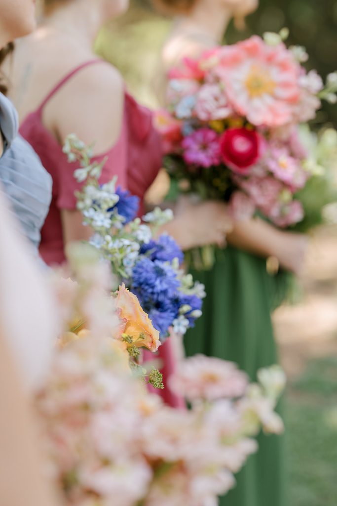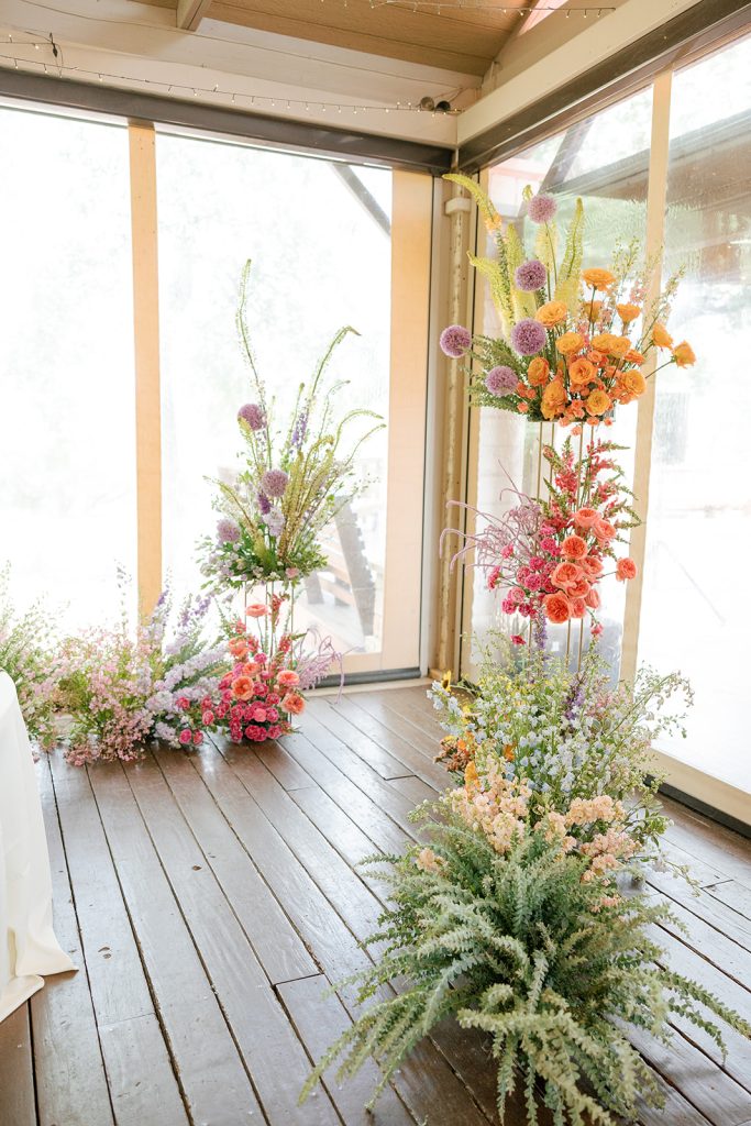 The color palette featured a delightful mix of warm and cool tones, showcasing rich pinks, bright oranges, soft purples, vivid blues, and sunny yellows. This vibrant combination not only made a stunning visual impact but also ensured a cohesive and thoughtfully curated look throughout the wedding decor. Every floral detail was meticulously designed to harmonize with the day, enhancing the overall experience for guests and creating unforgettable memories.