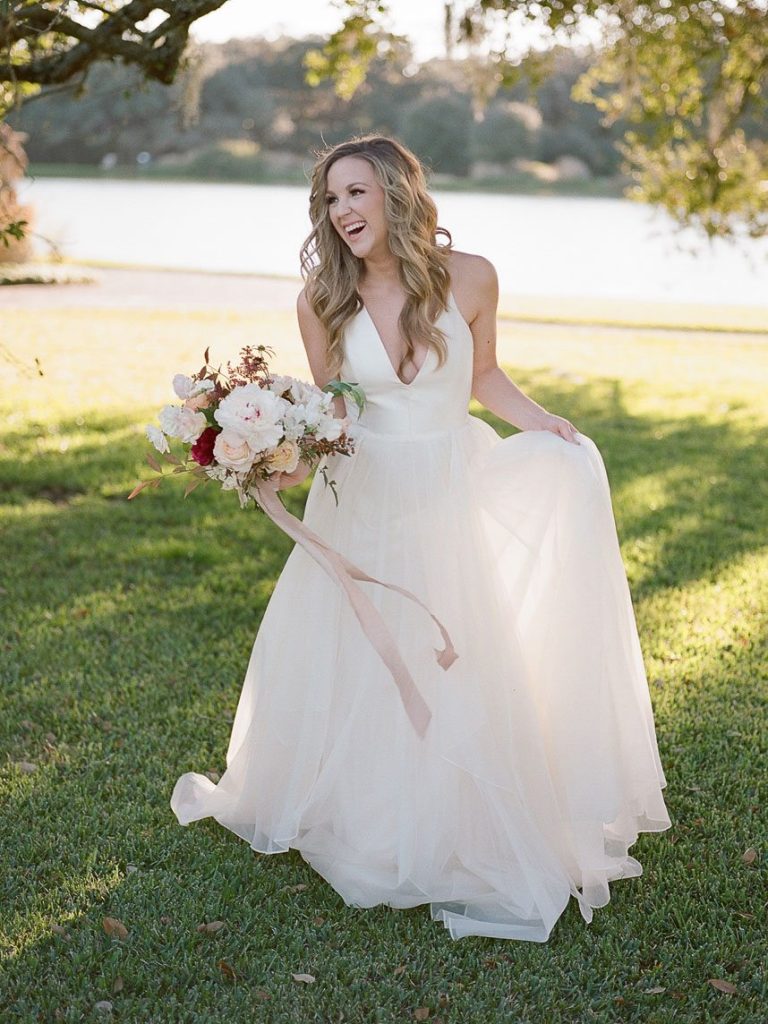 Old-world Europe meets the Texas landscape in this French countryside wedding inspiration from Houston wedding planner Chancey Charm Weddings. Soft and romantic tones, including sweet blushes paired with deeper pinks and reds, transformed the scene at Houston Oaks into a storybook setting with a stately table, bold and full blooms and small, intricate details to bring as much Old World flair as possible. The model bride donned loose waves and neutral makeup by Blushworthy in keeping with the chic, classic look of the day. Oh-so-lovely and feminine details, from the specialty cocktails and the cake to the table setting and everything in between, made this French countryside scene feel so sweet and sentimental. A classic Rolls Royce as the getaway car is just the icing on the cake!