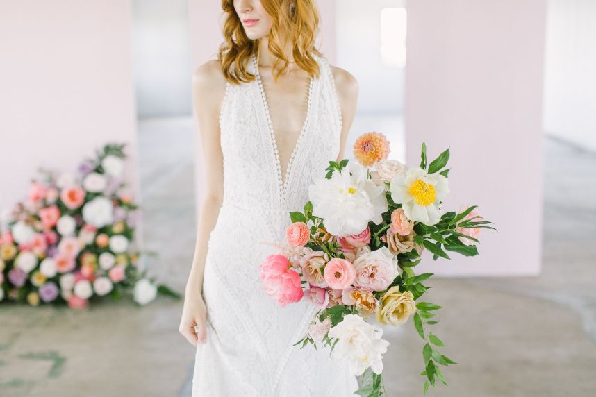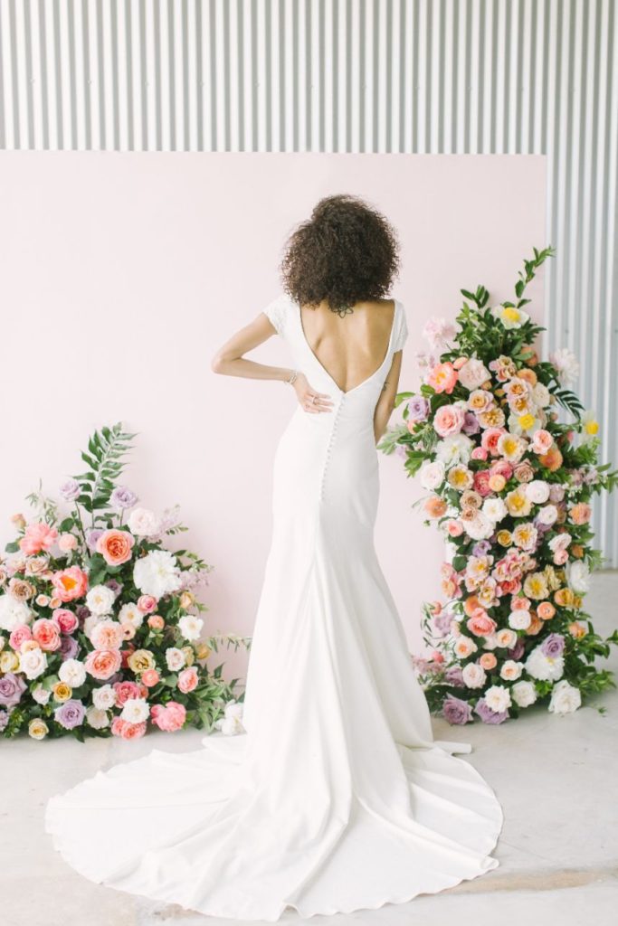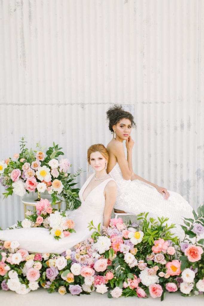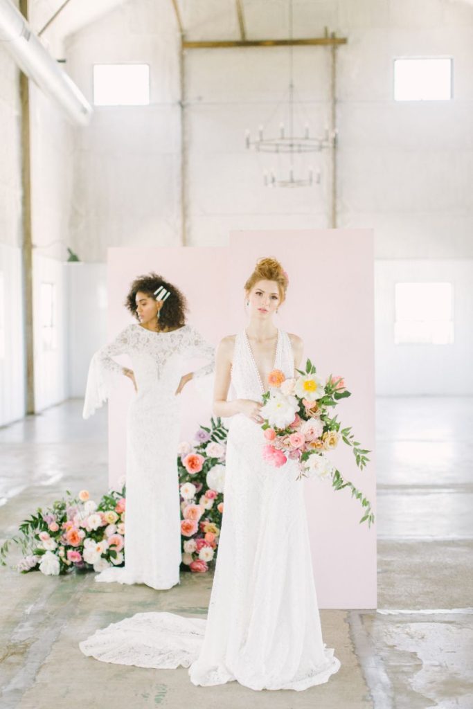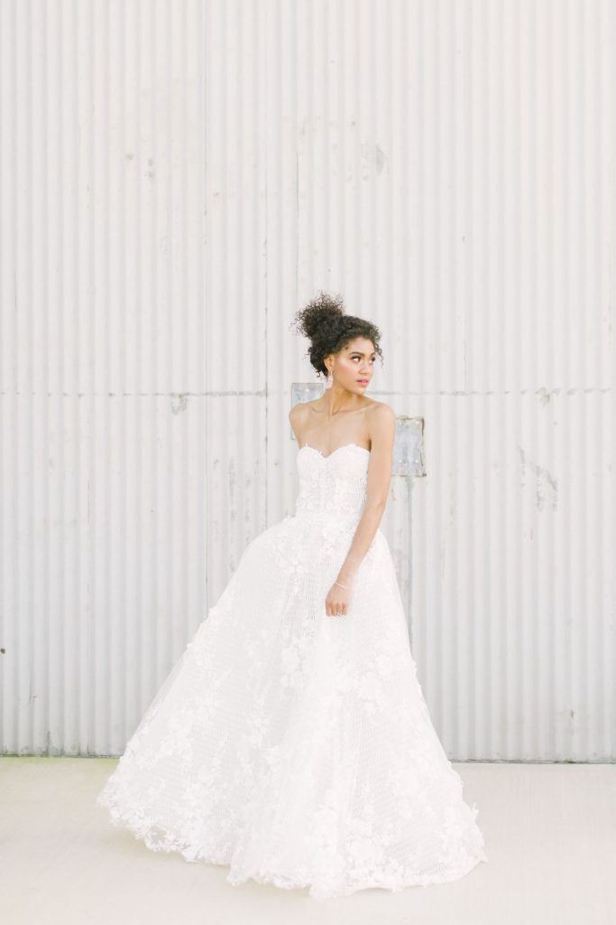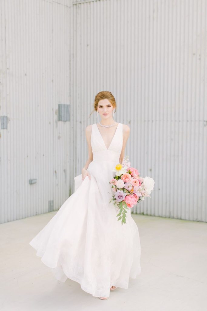 We’ve been anticipating this day for months: finally revealing our Fall/Winter 2019 fashion editorial – Freshly Picked! Our team curated a stunning collection of statement-making gowns for the style-minded bride, working with an incredible team of vendor to capture each look against the awesome industrial background of The Gin at Hidalgo Falls, adorned with texture and brightness via floral installations from Flower Vibes in fun, punchy colors everywhere you turn! Adorne Artistry transformed our models for each look, keeping their faces fresh and hair looking effortless through each look, keeping in line with our bright, cheerful aesthetic. Fine jewelry from Kaira accentuated the looks, adding a pop of glam to the boho dresses and subtle snazziness to the more classic hemlines. Kate Elizabeth Photography was the perfect choice to capture these looks with her light and airy style, while Reverent Wedding Films documented all the fun on film for us to remember! Featuring eight gorgeous gowns from the top bridal boutiques in Houston, these freshly picked looks are sure to inspire. Let us know your favorites!