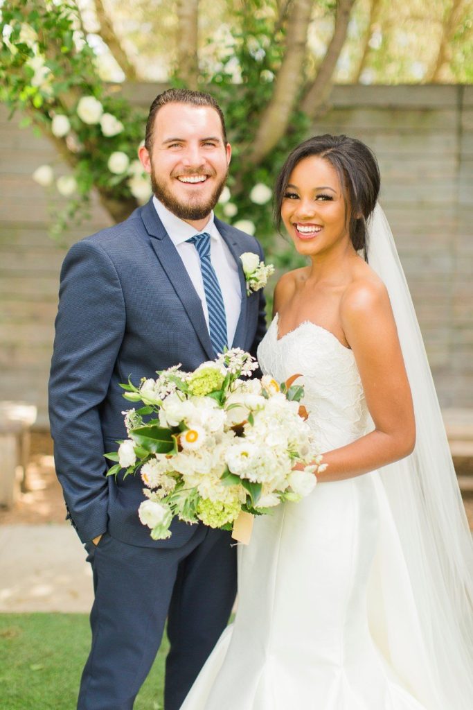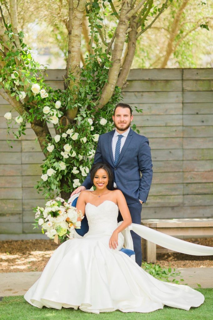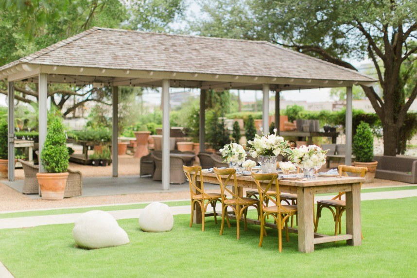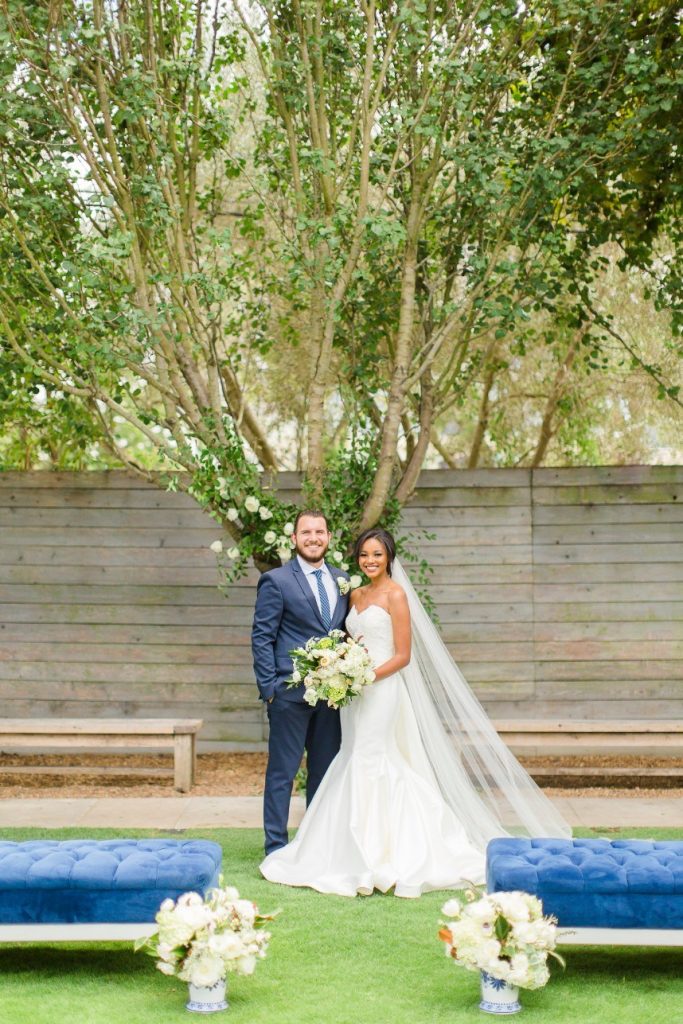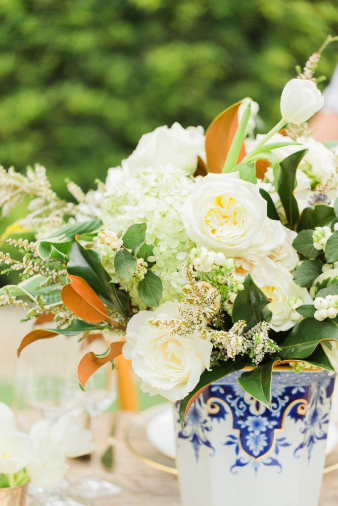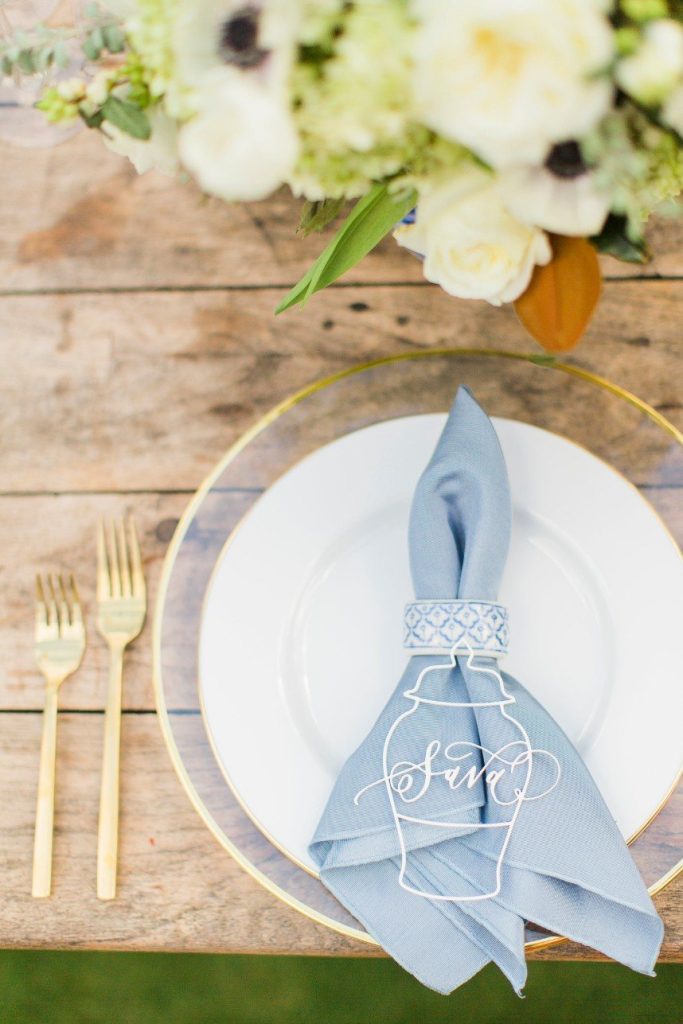 We’ve seen chinoiserie – a classic blue and white pattern – make its way into several celebrations this year, and this garden chinoiserie styled shoot works just beautifully with it as the theme! Dreamed up by Sava Sipe of Houston wedding planners Two Be Wed, this quaint scene gives a fresh, modern twist to the timeless blue pattern, pairing it with bright ivory blooms and lively greens from Lanson B. Jones Floral. Keeping with the color scheme, the model groom wore a dapper blue suit, while the bride donned a gown with a classic silhouette, paired with fresh, natural hair and makeup by Hey Lovely. A weathered farmhouse table and wooden chairs were juxtaposed against the china pattern to help the whole scene feel approachable and fresh. We’re especially obsessed with the stationery and how it carries the pattern so eloquently from the invitation suite to the place cards – the laser-cut detailing is such a thoughtful detail! With plenty of dark and light blue touches, like the tufted ceremony seating and linens bringing texture to the scene, this garden chinoiserie shoot has everything we could want and more. Cheers!