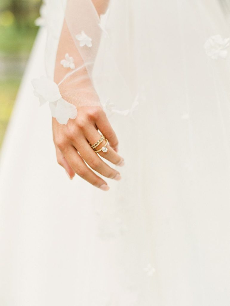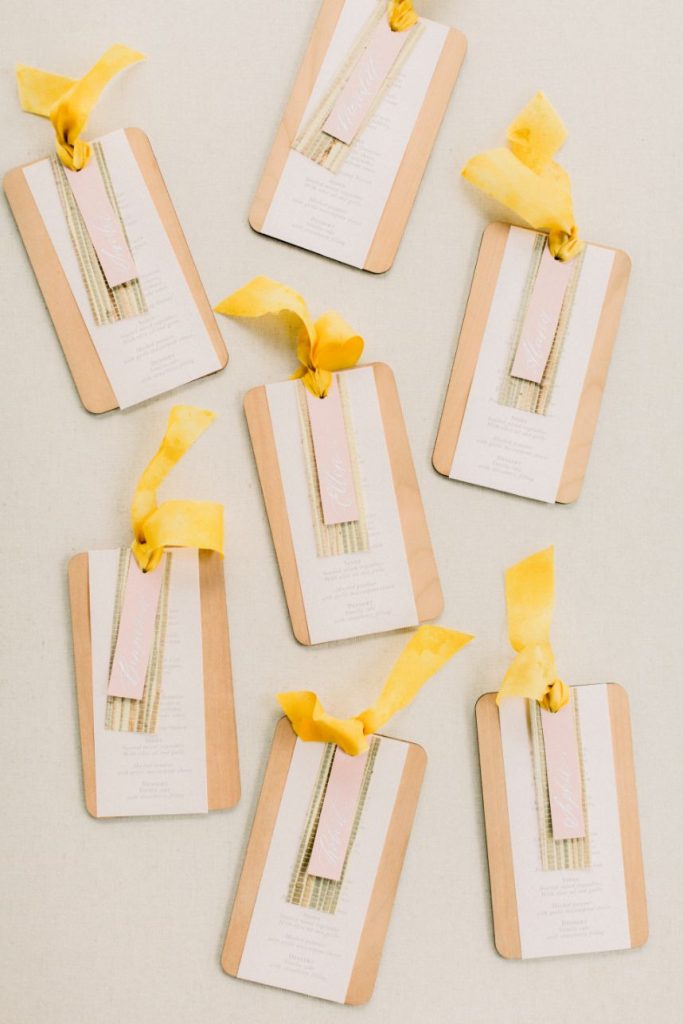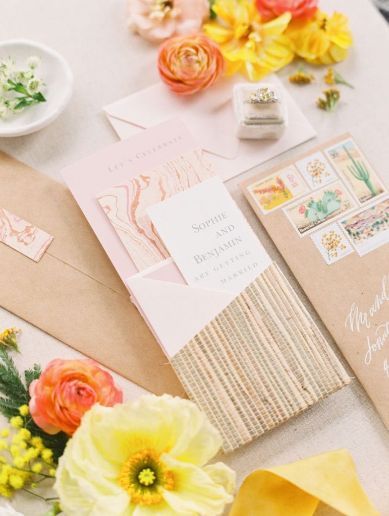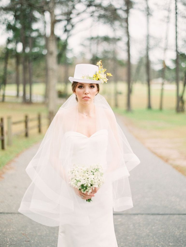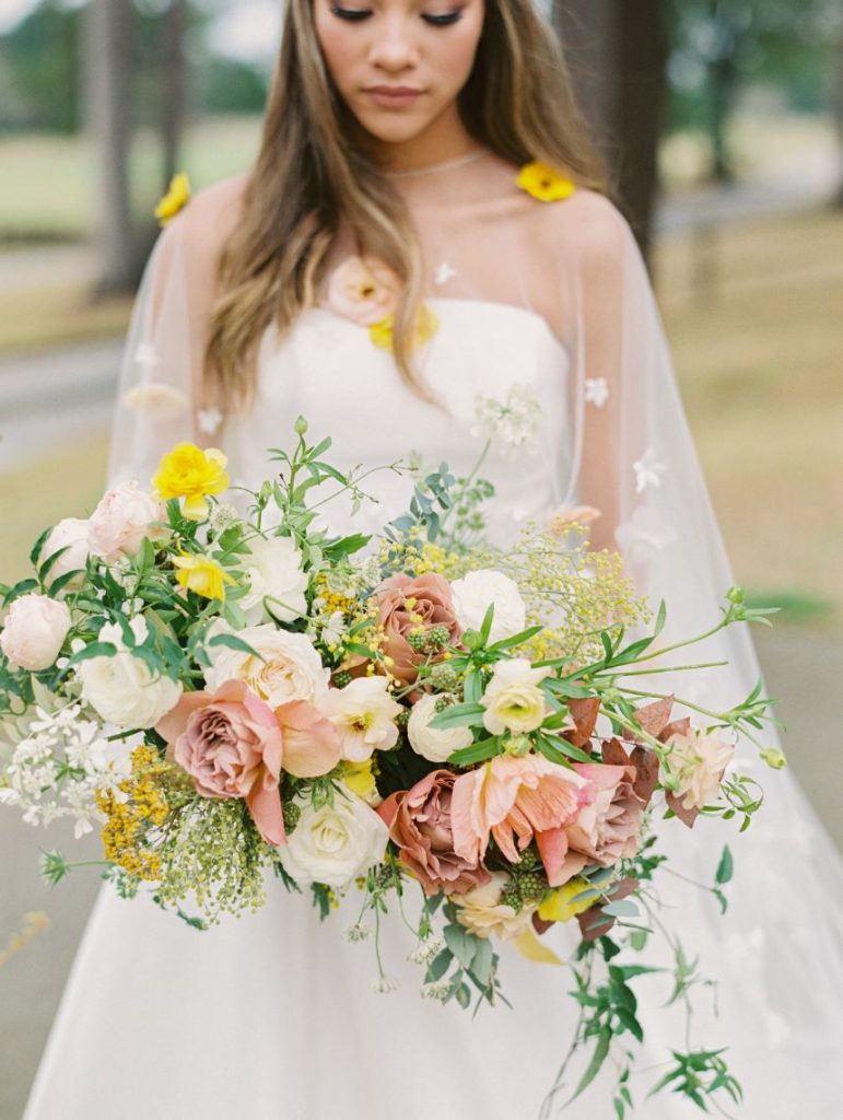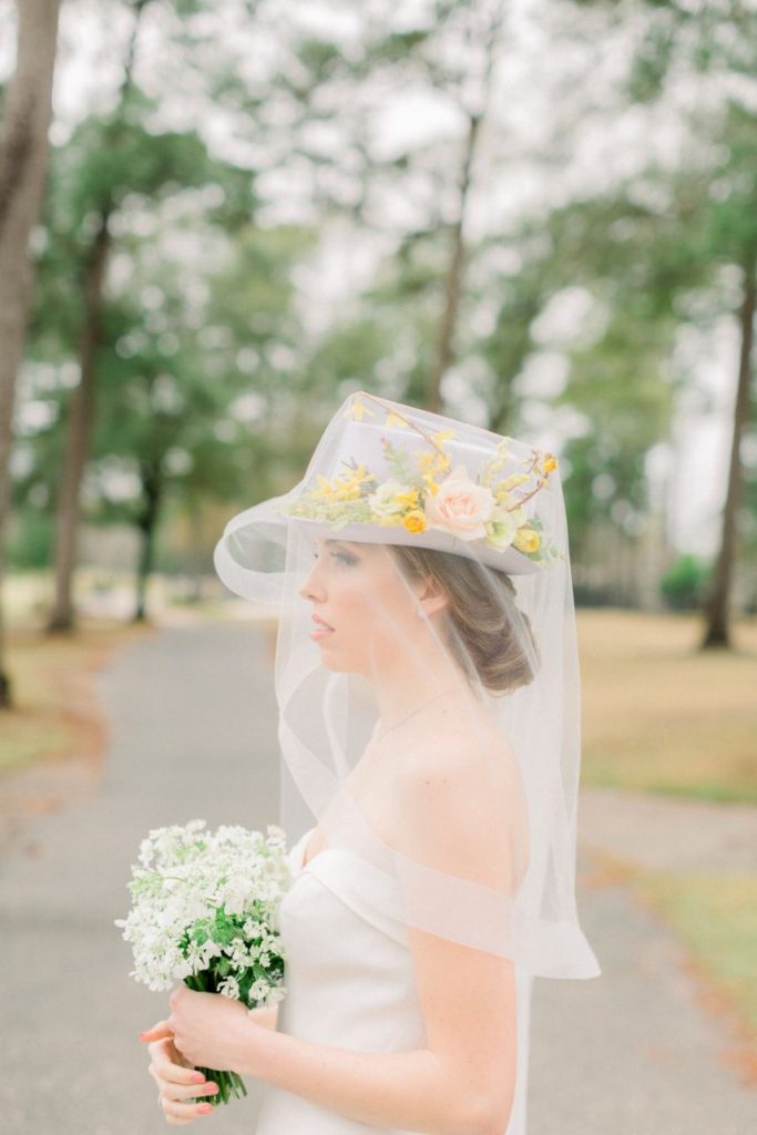 This garden party wedding inspo takes elements of an afternoon picnic and elevates them to a whole new level! Whimsical notes and bold tones such as orange, peach, yellow and green all work together beautifully without becoming too busy, thanks to thoughtful design styling from Alyssa Meeks Events, timeless photography by Fulleylove Photography and beautiful details from a talented Houston vendor team on display at The Clubs of Kingwood! We can’t help but first notice the striking florals: organically arranged, fresh and bright blooms from Bramble & Bee. Two distinct bridal looks from Whittington Bridal also share the stage here, one paired with a striking hat and the other with a long, whimsical appliqué veil and fine jewelry by Uptown Diamond. Adorne Artistry help to complete each bride’s look – one inspired by Meghan Markle and the other, Bridget Bardot. Lavish Linens provided some of the more colorful and textured linens, while EB Inc. and Swift + Company helped to complete the al fresco tablescape with wooden chairs and wicker chargers alongside crisp white dishes and fun colored glassware, respectively. Half Moon Lettering worked her stationery magic with layered, textured paper details in a slew of pretty colors. We love the way this team used the natural surroundings to their advantage, picking colors that really pop and using pieces like the hanging lanterns and plaid linens to bring a different vibe to the space. A simply gorgeous garden party! Cheers!