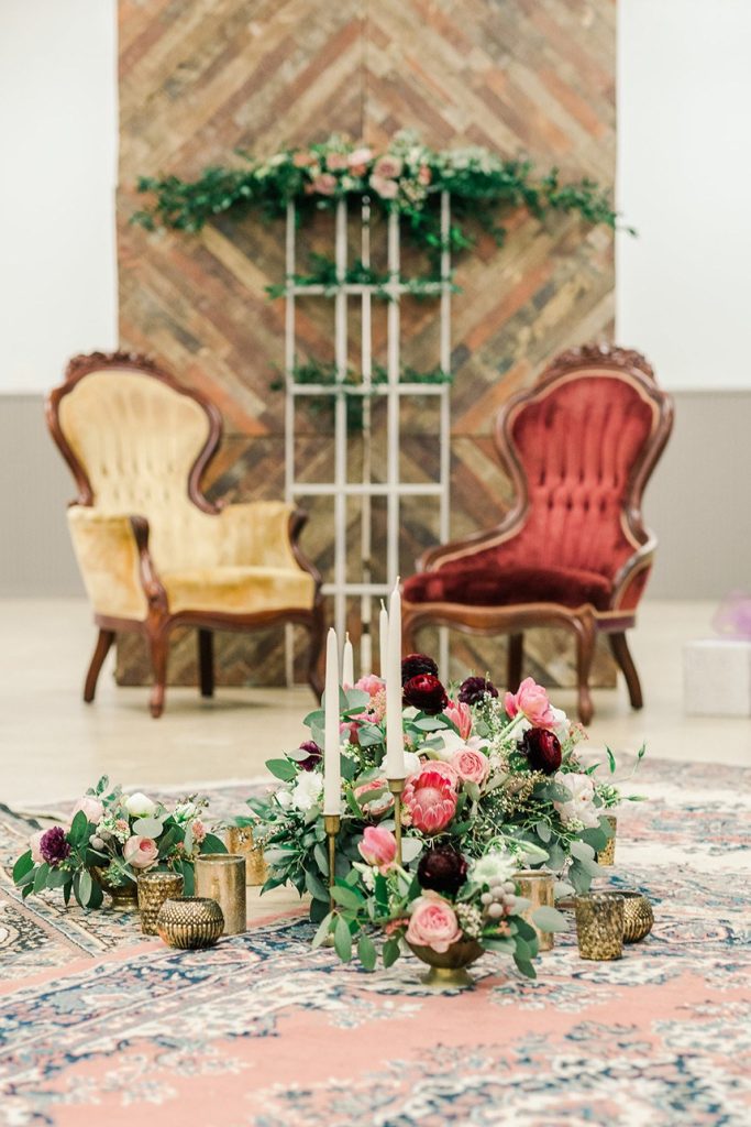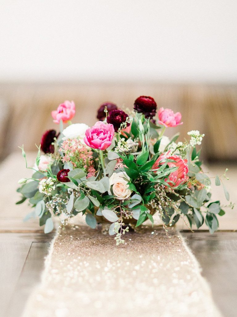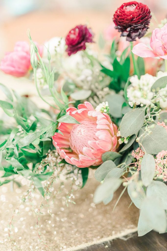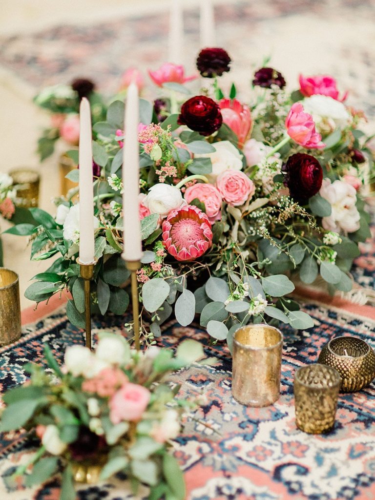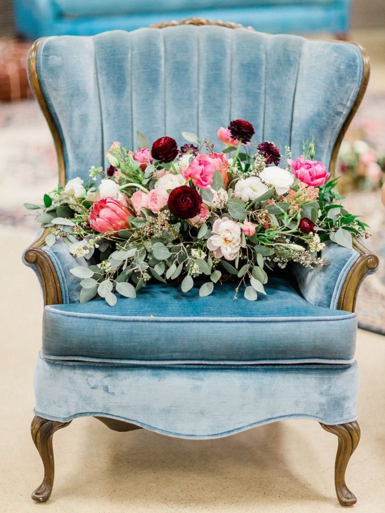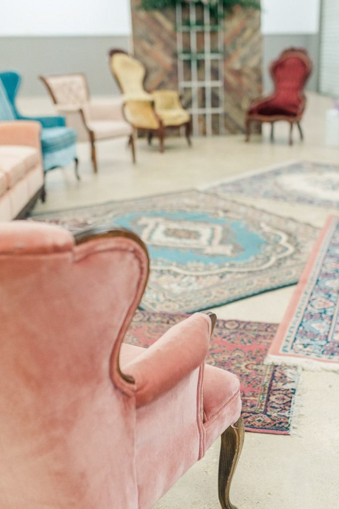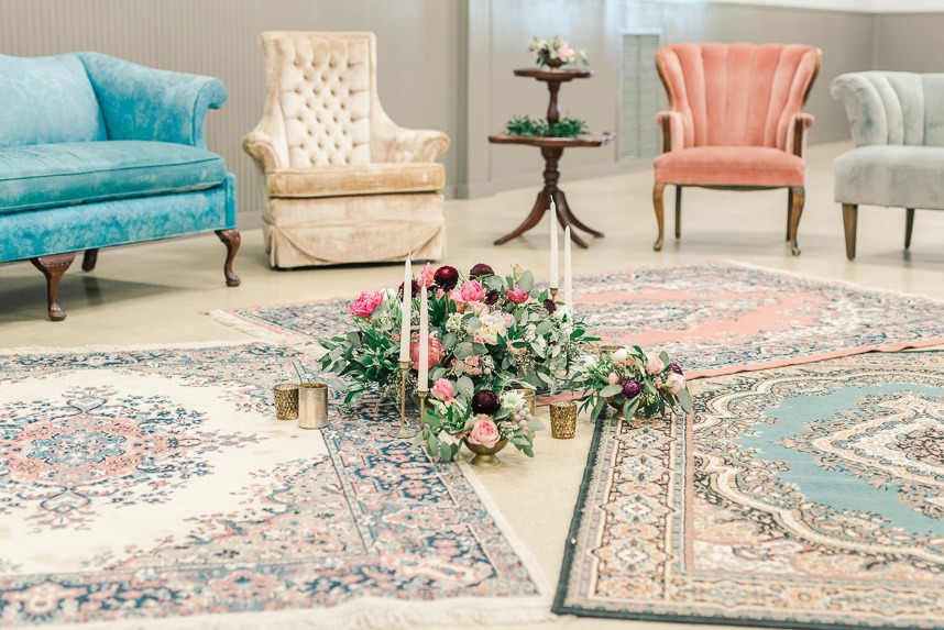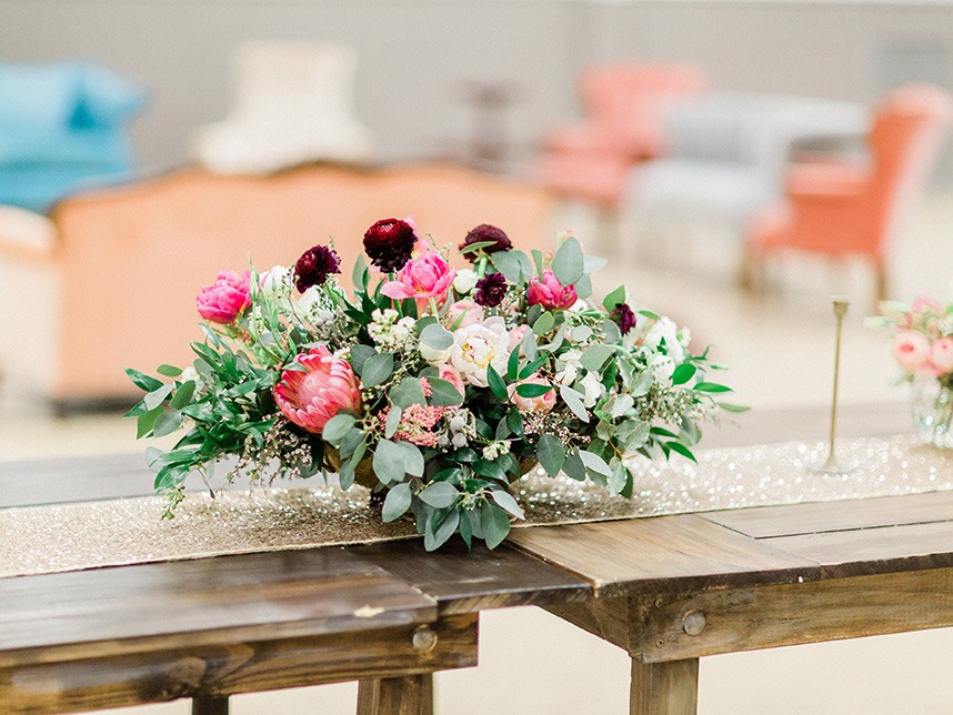 What better way to celebrate the florist behind Urban Rubbish Floral Designs’ own wedding than with a glam boho bridal shower planned to a T by her friend and event planner and EPOCH CO+ Events? With a vision built upon a casual seating area where all guests could chat comfortably and stylishly, Paige of EPOCH CO+ incorporated multiple colors and textures into one cohesive design, which she appropriately termed “glam boho” – we think that description fits perfectly! From the mismatched vintage chairs and rugs to the glittery table runners and bold protea arrangements, this styled bridal shower is truly one-of-a-kind! Be sure to read below to hear more about Paige’s inspiration and thoughts behind the styling of the shower. Cheers to this special bride!