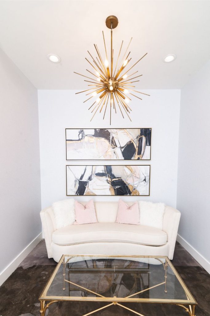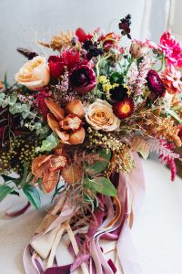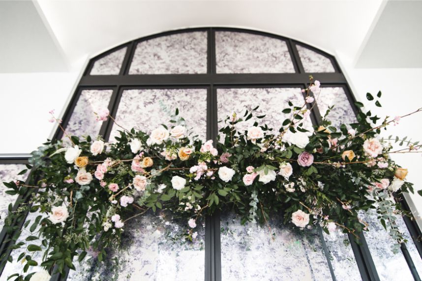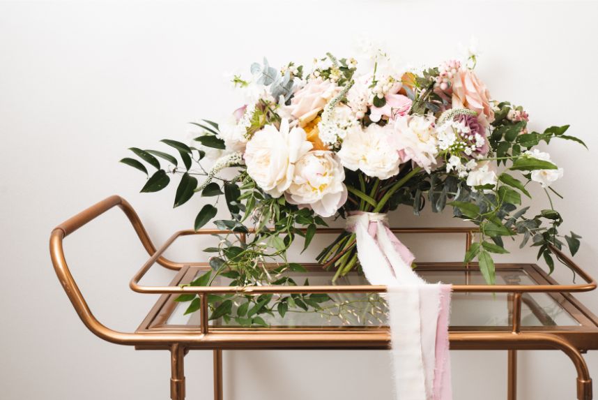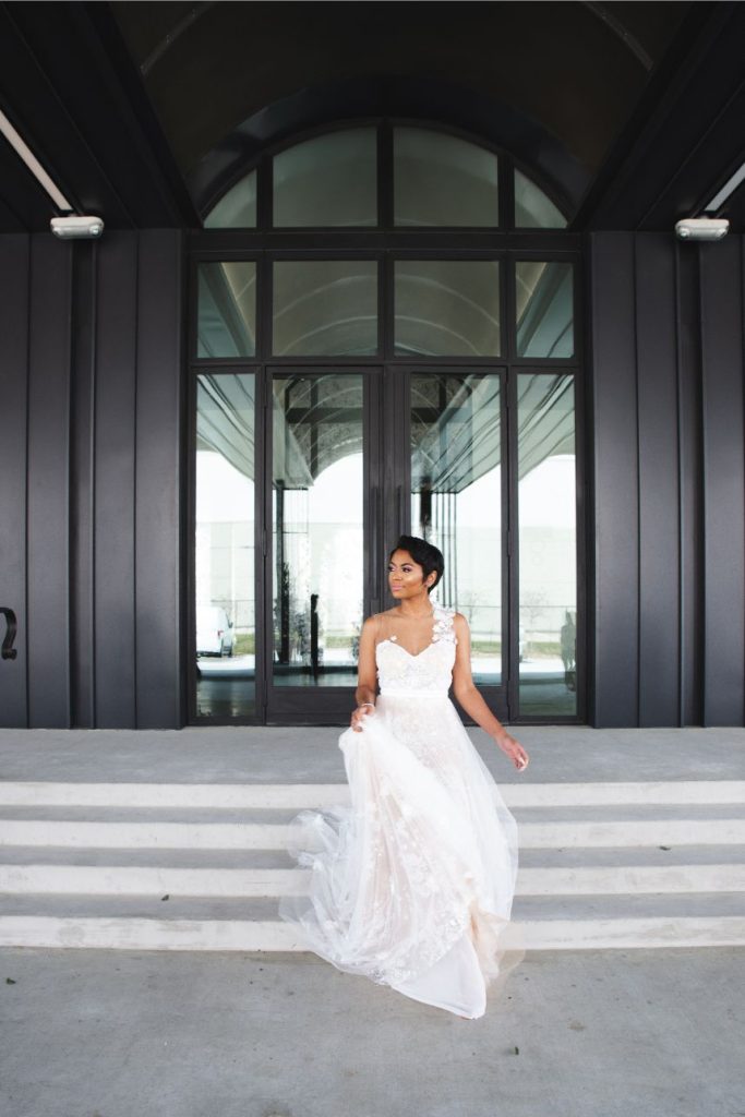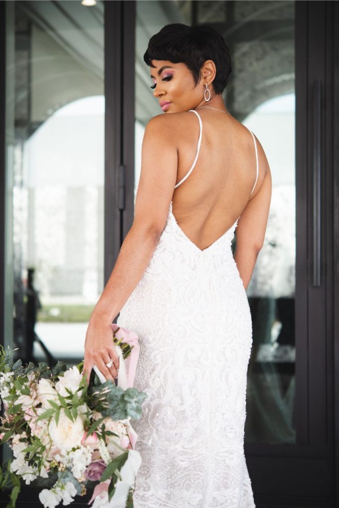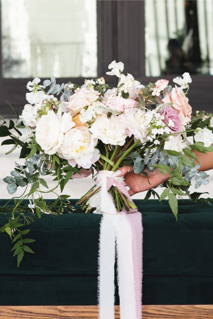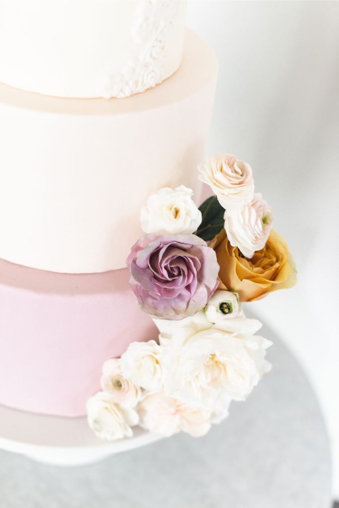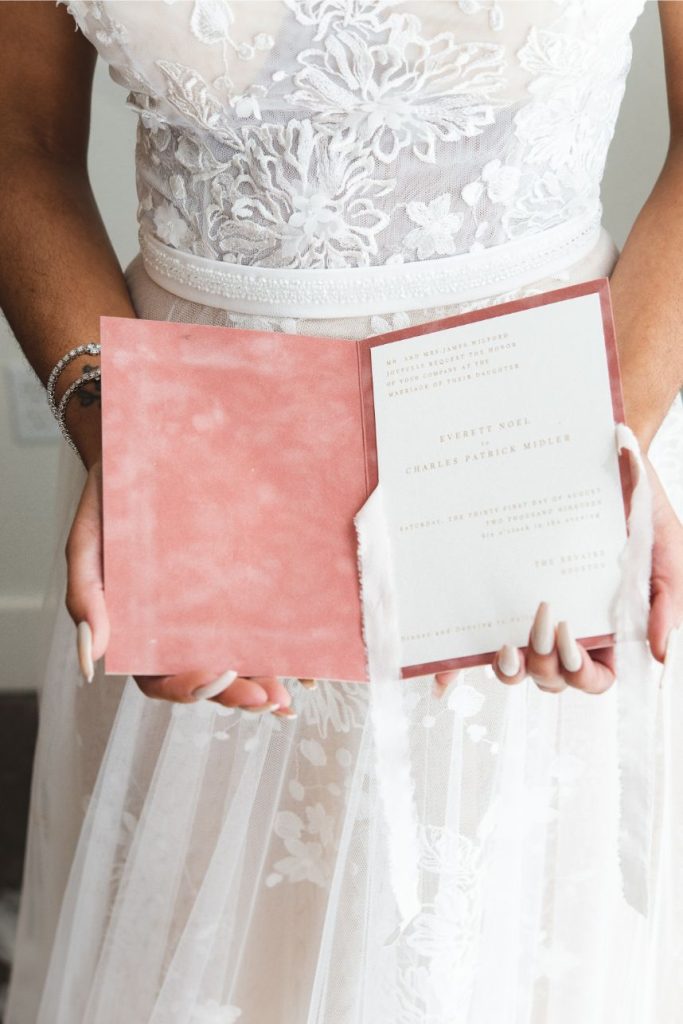 Glam meets ethereal in this stylish scene, and we simply can’t get enough! Contrasting textures and tones are the name of the game here, with mauve, lavender, black and white playing off each other to create tons of visual interest everywhere you turn, from the tiered, floral-adorned cake by Becca Cakes to the amazing blooms and beyond. Brushed gold modern accents and the mercury glass throughout The Revaire’s space help to add to the contemporary glam aesthetic, while the ultra-feminine gowns from Belle Âme Bridal, soft shimmery makeup and bright, organic florals in blush, ivory and mauve bring in the ethereal aspects. Memory Lane Paperie did an incredible job not only planning and hosting this styled shoot, but on the stationery and calligraphy as well – all the little details from the vow book to the name tags and labels add something special to the scene, with styling assistance from the talented Two Be Wed! Sparkling gems from Uptown Diamond are oh-so-sparkly and swoon-worthy, too. Take a scroll through the images below and be inspired by all the bold, beautiful elements of this glam, ethereal scene!