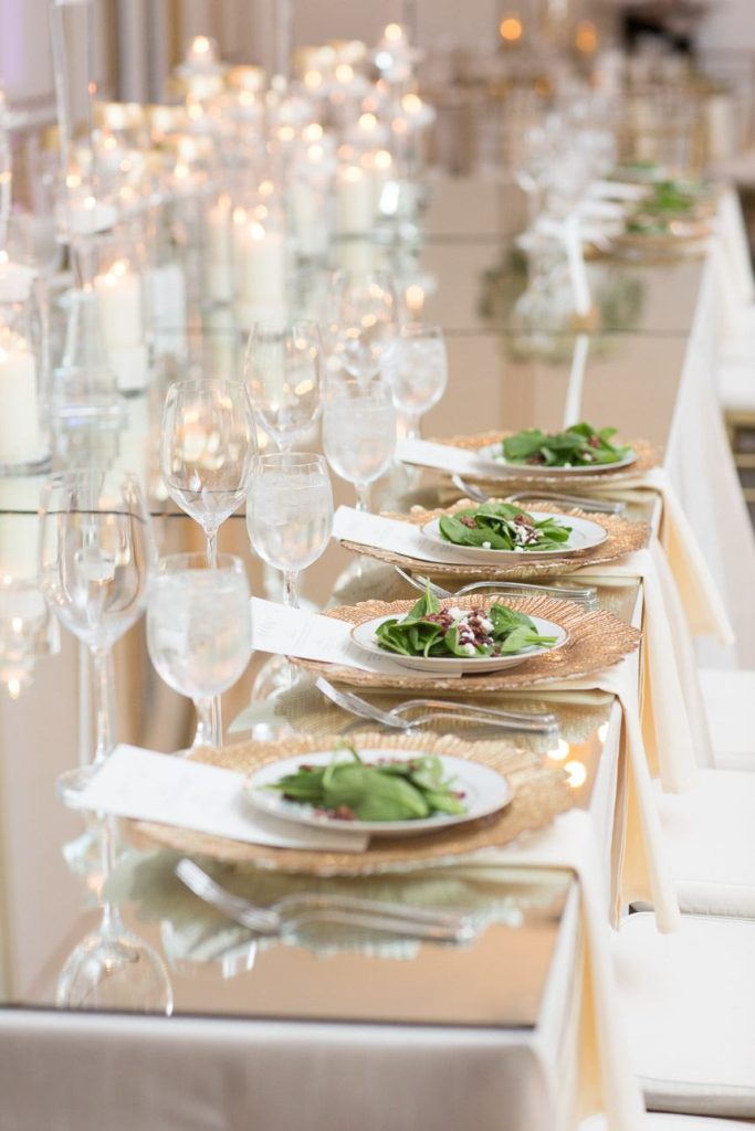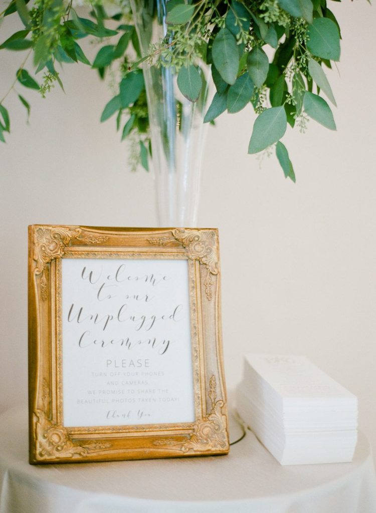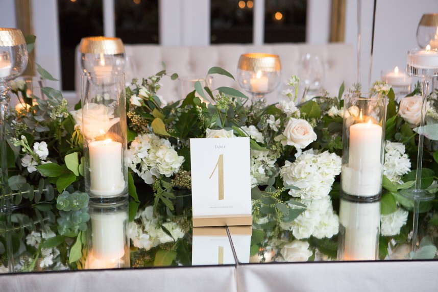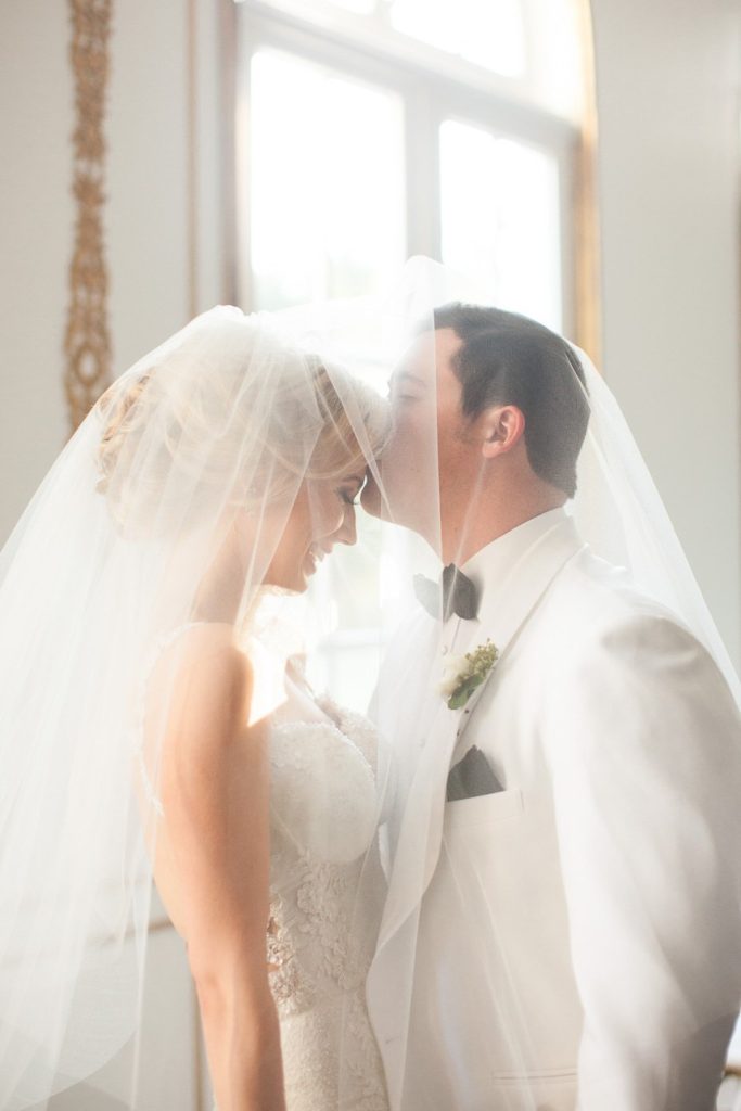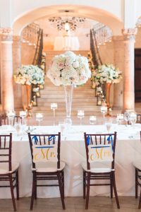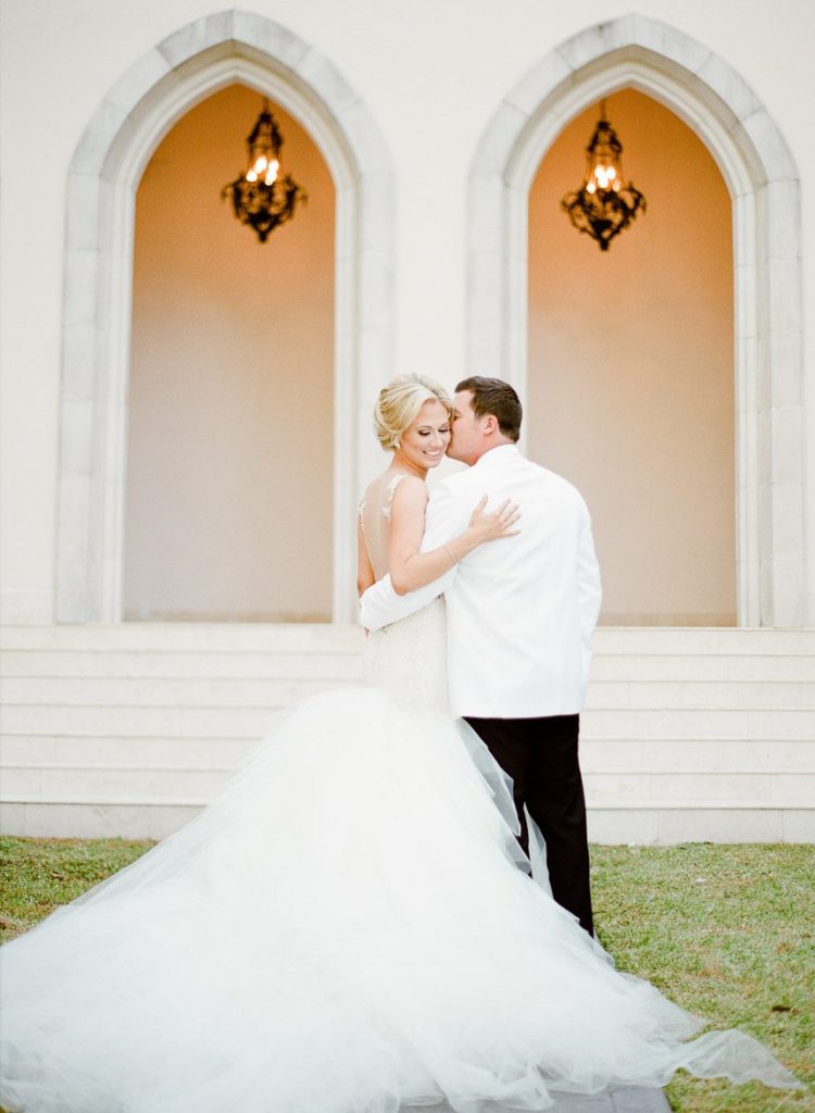 From the bride: “Having my first look with my dad was such an emotional experience. He was seeing me in my dress, all grown up and the last time as a Heflin. We did our first look in the ceremony room. He stood near the altar with his back facing me, and I walked down the aisle to meet him! This was such a special moment that we shared. Next, I was on my way to meet my groom! Before we got to see each other, our wedding gifts were exchanged. Greg surprised me with a custom diamond tennis bracelet made by Anschar Diamonds and I got Greg a gold Movado watch, each delivered with a personal letter from the other – mine on beautiful stationery and his on an index card. Love that man. It was so us. After the gifts were exchanged, we were led to meet each other. Greg was waiting for me in the courtyard with his back facing me. I had always wanted to do a first look just to have that time for us to take it all in and embrace the moment without any distractions. It was intimate, emotional and just us two.”