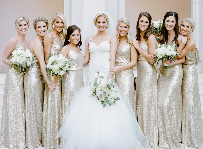 With touches of sparkle in every thoughtful detail, Brittany and Greg’s glamorous and elegant wedding was a sophisticated soirée they’ll never forget. Kelli Durham Photography captured the affair, showcasing the joyful couple and the stunning setup designed by Kelsey Shandley with Belle of the Ball. One element of this wedding we can’t get over – those florals! Gorgeous arrangements of white blooms and lush greenery made a statement in every corner, from the ceremony aisles to the centerpieces and even a sitting area complete with gold sequined pillows. Cafe Natalie provided catering for the guests, and we have no doubt that Brittany and Greg’s friends and family had a ball thanks to an amazing team of vendors who made their vision come to life.