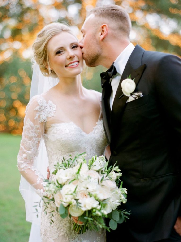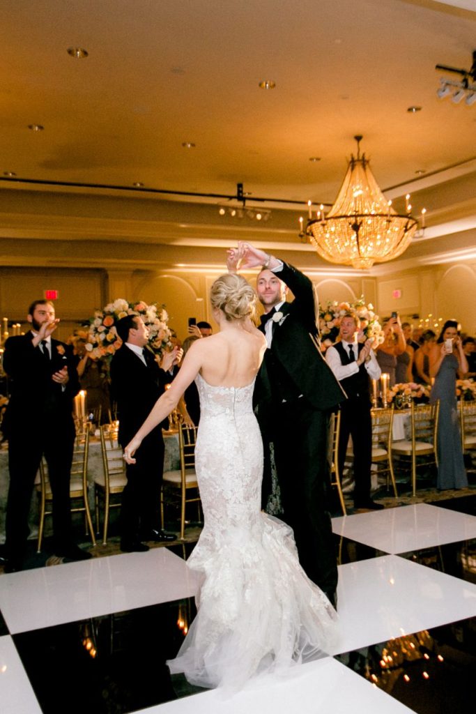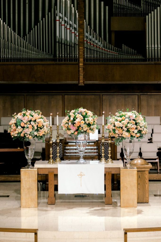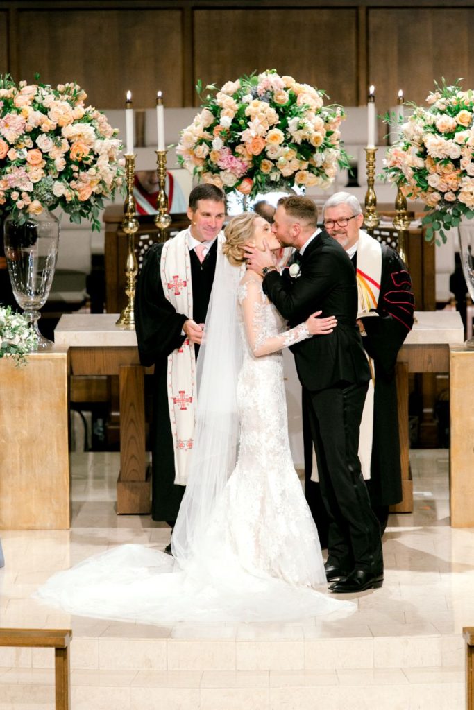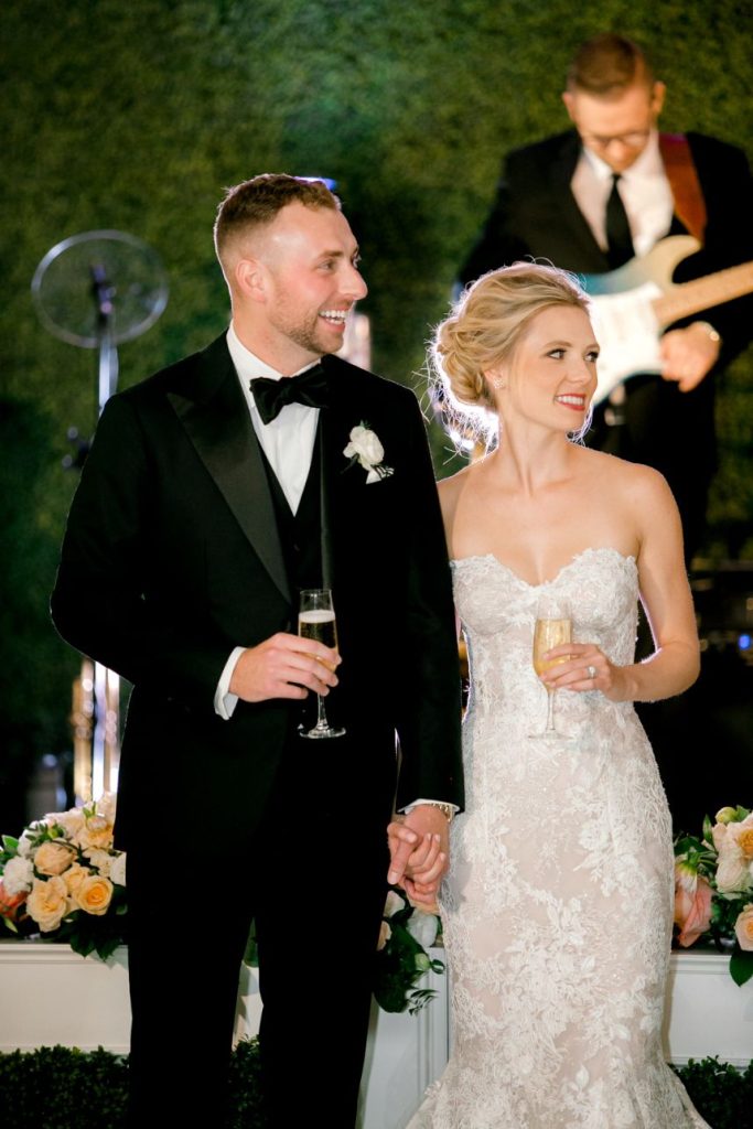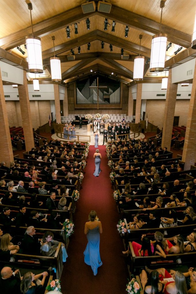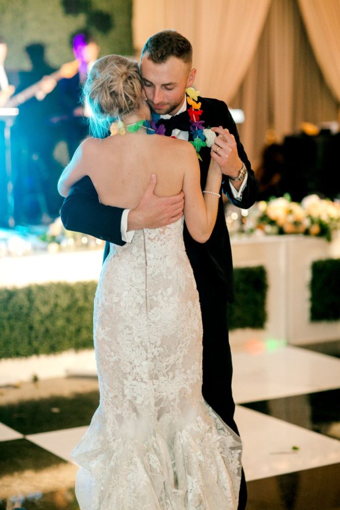 This black tie wedding was full of grandiose details from start to finish and we simply can’t say enough about its elegant design planned and coordinated by Two Be Wed! Madeline and Cole were dressed to the nines to say “I do” and we’re obsessed with the outcome. A chapel ceremony was a sweet and sentimental touch for the two where they were married by not one but two pastors, both lifelong friends of the family. Bride Madeline looked absolutely radiant styled by the artists at Hey Lovely with a natural, romantic bridal look that she wore to be married on the same stage that she was both baptized and confirmed on, which she says made for an amazing experience! Their luxe day carried over into a classy cocktail hour of fresh sushi and sips from the martini ice bar before guests proceeded into a dreamy candlelit reception. Everyone knew what to expect since the soiree was preceded by stunning invitations by Bering’s that detailed all the important need-to-know facts about the day. After cutting a rug on the dance floor to live music all night, these newlyweds made their grand exit filled with colorful leis and rose petals before their getaway driver drove them through the quiet and serene Memorial Park. It was truly the perfect end to a perfect night for a black tie wedding like this one. Read on for a note from the bride about one of her favorite wedding day memories and what made it so special. Cheers to the Mozjesiks!