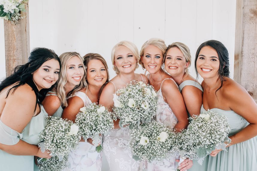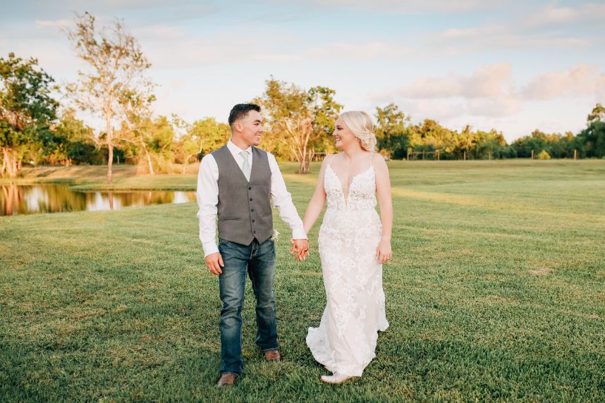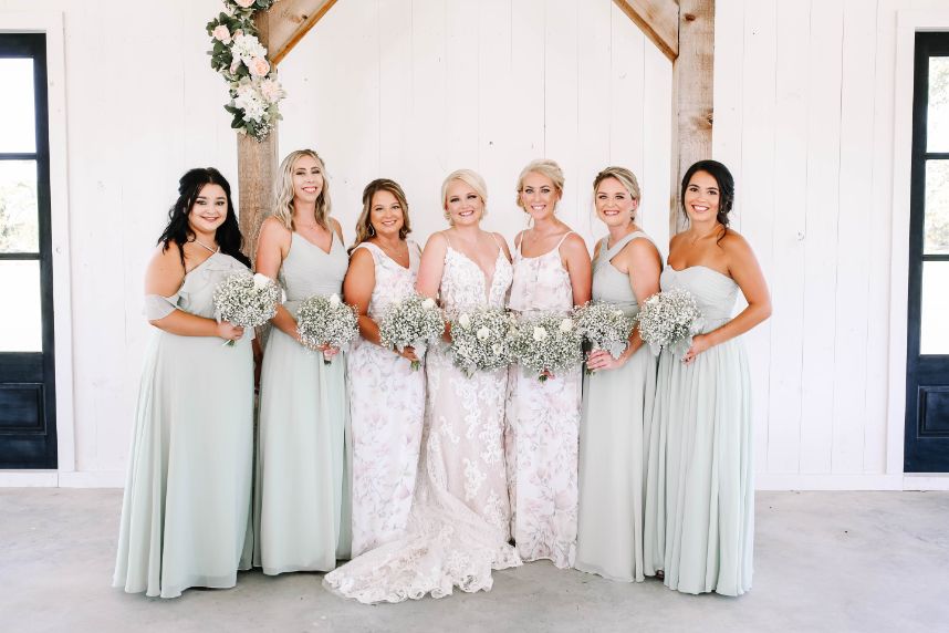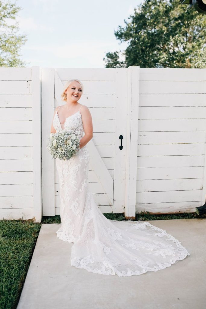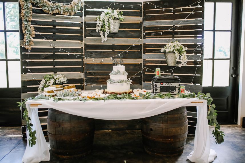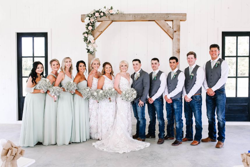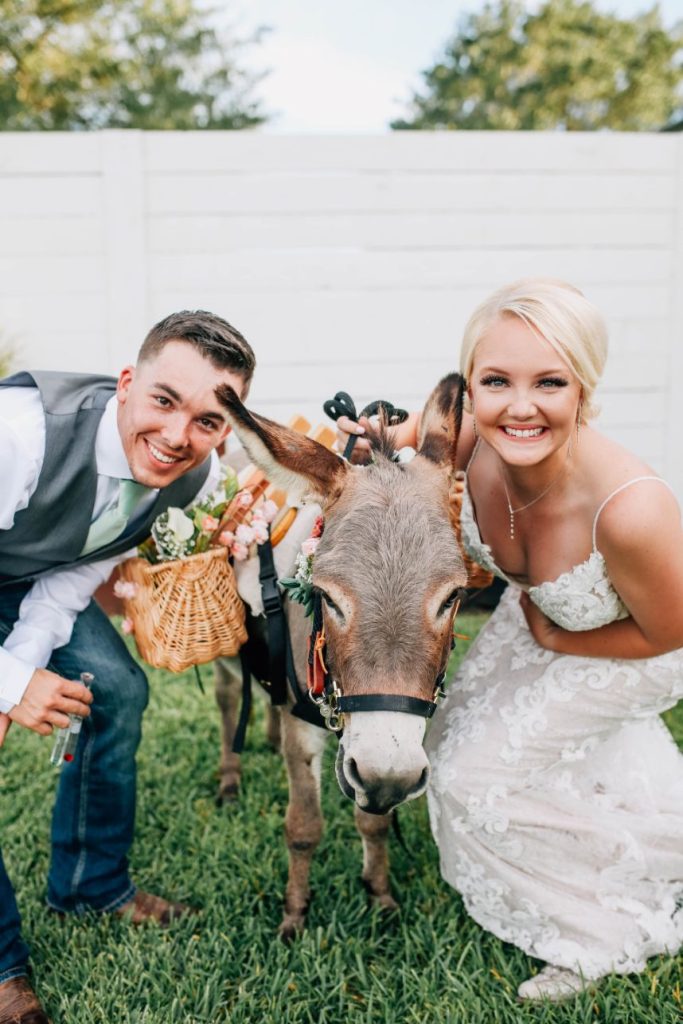 High school sweethearts Sidney and Cody first met when she was a freshman and he was a sophomore. Sidney says she noticed him in the hallway one day and went to a friend’s house later that night to look him up in the school yearbook. The rest, as they say, was history! We love a classic love story like theirs! The high school sweethearts were on a cruise to the Cayman Islands with some friends a few years down the road where Cody popped the question to Sidney on a beautiful beach with just the two of them. Completely surprised, Sidney says that looking back it was such a romantic moment. We think there was just as much romance in their rustic August affair at The Barn at Willowynn! The modern barn venue was the perfect place for this couple to hold their charming, late-summer soiree that incorporated touches of sage green and baby pink into the mostly monochrome palette. According to all involved, the reception food was exceptional, their elegant wedding cake tasted amazing, and everywhere you looked were the most beautiful floral installations made by the bride’s aunt. Another huge hit was Willie the shot donkey, who comes along with the venue! These high school sweethearts thought of everything and then some in their rustic August affair. Read on for a note from the bride about one of her favorite wedding day memories and what made it so sweet. Cheers to the new Mr. and Mrs. Hicks!