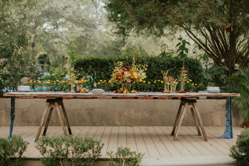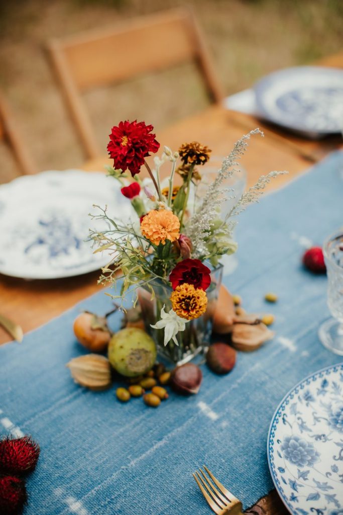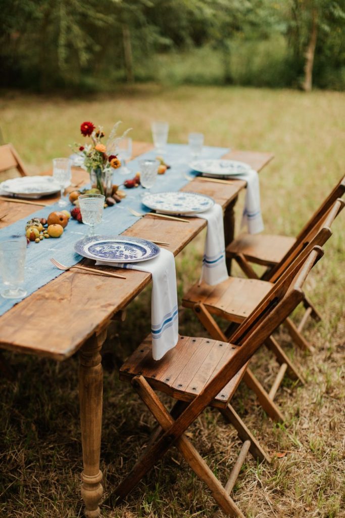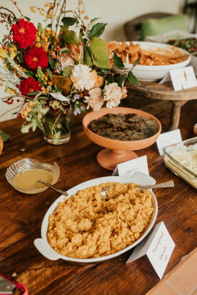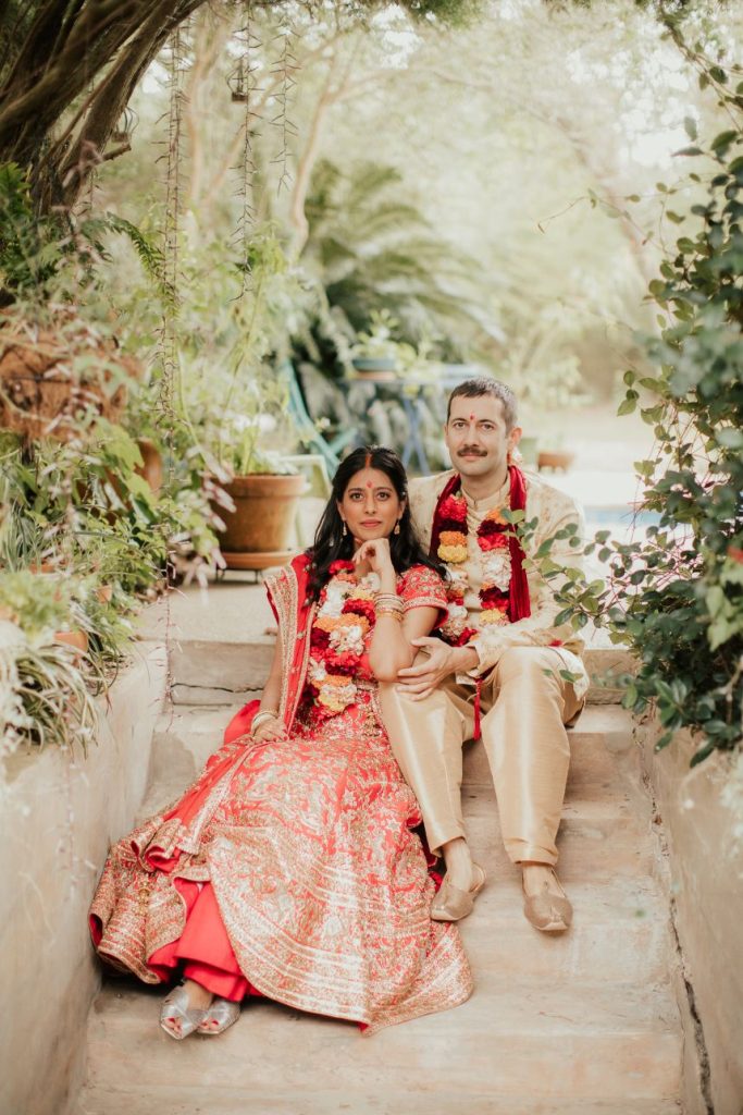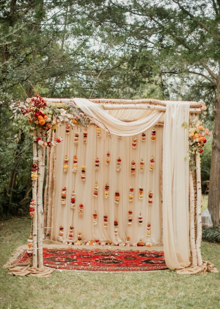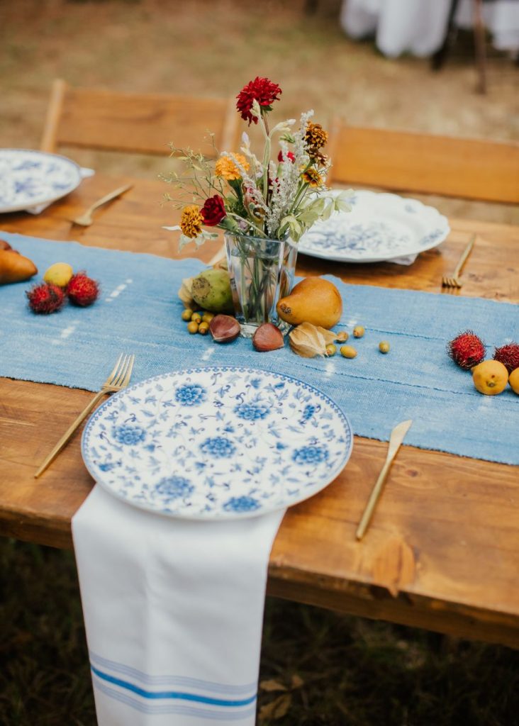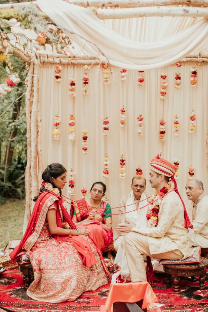 The colors alone are enough to steal our attention, but we stayed for the understated, yet breathtaking mandap design in this vibrant wedding blending a Hindu bride and Christian groom. The couple started the day getting ready at a family home before kicking off the Baraat and Hindu ceremony. This bride didn’t want a typical Hindu ceremony and took inspiration from the nature and architecture around her, stylishly applying it to décor for the event with plenty of help from wedding planner Epoch Co+. Floral design played a pertinent role in the festivities and blooms by Edges Wild Studio went above and beyond in every way. Their flowers had a modern Indian Renaissance flair, which worked beautifully since the couple wanted to keep with a very minimal mandap design – focusing on the warmth of the peach, red, marigold, and cranberry hues with contrasting pops of blue all captured in full detail by Tiny Mum Photography in the gorgeous gallery below. Once the Hindu ceremony concluded, the groom’s family read some of their favorite Bible scriptures aloud. This was followed by a casual luncheon where the couple then flipped the script, and the scene. Décor and seating from Loot Rentals and Party Time Rentals kept things simplistic yet upscale, even in the middle of a meadow. A wooded reception setup designed with an emphasis on french blue throughout runners, glassware and china married beautifully with citrus-hued floral and fruit accents of peach, mustard and vermillion, almost as if foretelling the long, fruitful life they will live together. Due to COVID, the large-scale ceremony was scaled down to their closest loved ones, so the family shared sentimental toasts to the newlyweds and a large spread of sweet treats before concluding the romantic celebrations. Read on for a note from the bride about their dream wedding maker, and what made this local vendor so special. Cheers to Nishiel and Paul!