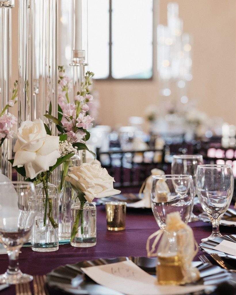 Sweet as honey! Honey & Jason’s winter wedding at Lott Hall was nothing short of magical! From the elegant purple tablecloths to the charming honey jar favors, every detail was truly them!