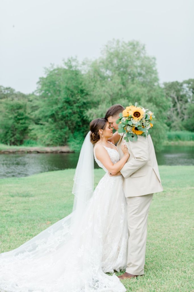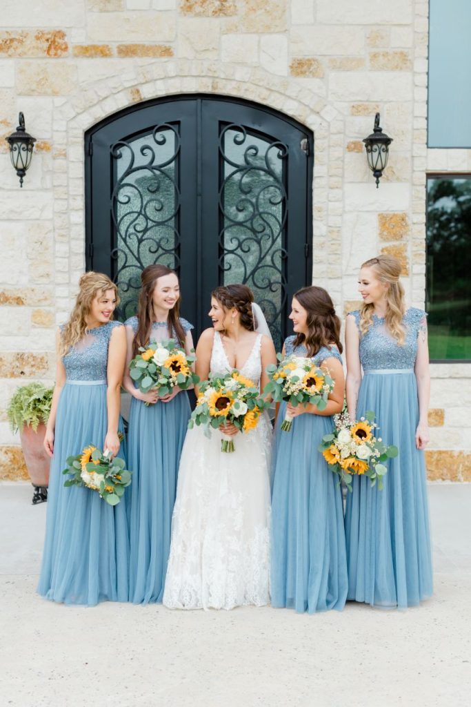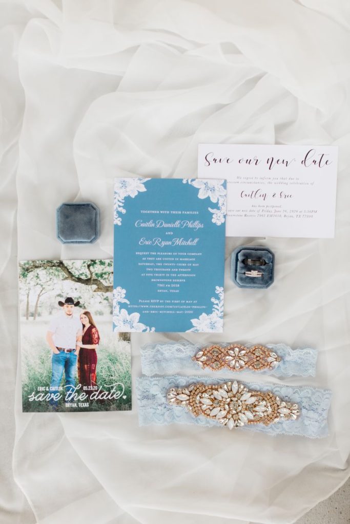 This Houston corona couple loves each other so much, they were married twice! Caitlin and Eric tied the knot once on their original day surrounded by immediate family and once at the venue of their dreams, with both days captured beautifully by Weddings by Westy. Love in the time of COVID-19 is not for the faint of heart, and rescheduling and rebooking vendors has left many couples high and dry on their big day, but Caitlin says luck was on their side when replanning their reception! “Our date was set for May 23, 2020,” Caitlin said. “That was the day we counted down to for years. We held our hope as long as we could but ultimately we had to make the decision to postpone our big day due to COVID. That was the hardest choice we have ever had to make together.” But together they absolutely made it, and their amazing vendor team made the change as seamless as possible! Love is so prevalent in their romantic rustic wedding and we love the delicate blue palette, sunflowers, and plentiful baby’s breath making the whole affair feel so light and airy. With sweet, sentimental details around every corner, we aren’t sure the Mitchells could have planned a more perfect day. Read on for a note from the bride about what it was like postponing the wedding of their dreams. Cheers to Caitlin and Eric!