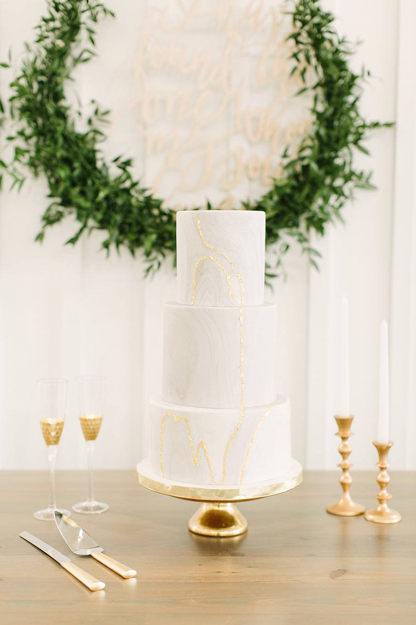 For our glam brides, a marble cake is a must! Playing off the current gemstone and marble home decor, these designs are the perfect way to add a subtle texture to an otherwise classic white wedding cake.