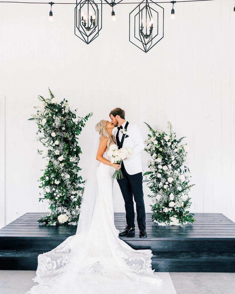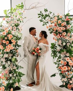 If florals are top-priority for your wedding, be prepared to spend upwards of 10% of your overall budget on blooms. Remember that larger installs also require more labor – often a team, not just one person – and will affect the price you pay. If you’re looking to save money when it comes to florals, you’ll need to scale down on size and intricacy. You can also save by using blooms that are in-season and more commonly grown/easy to order.
