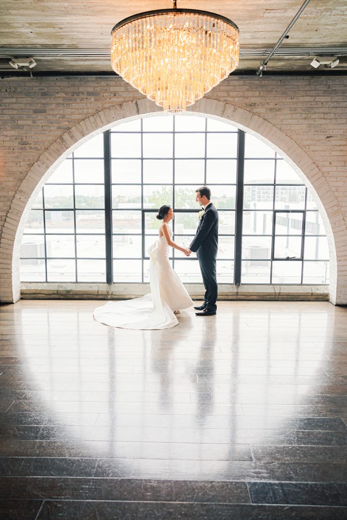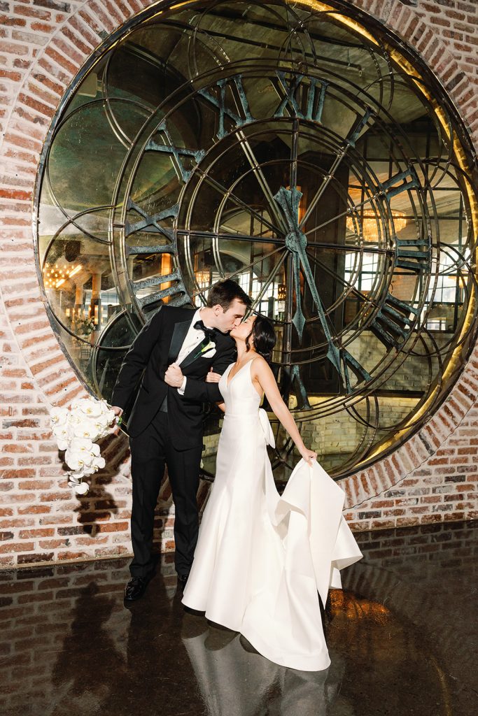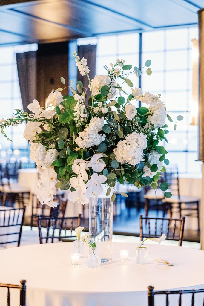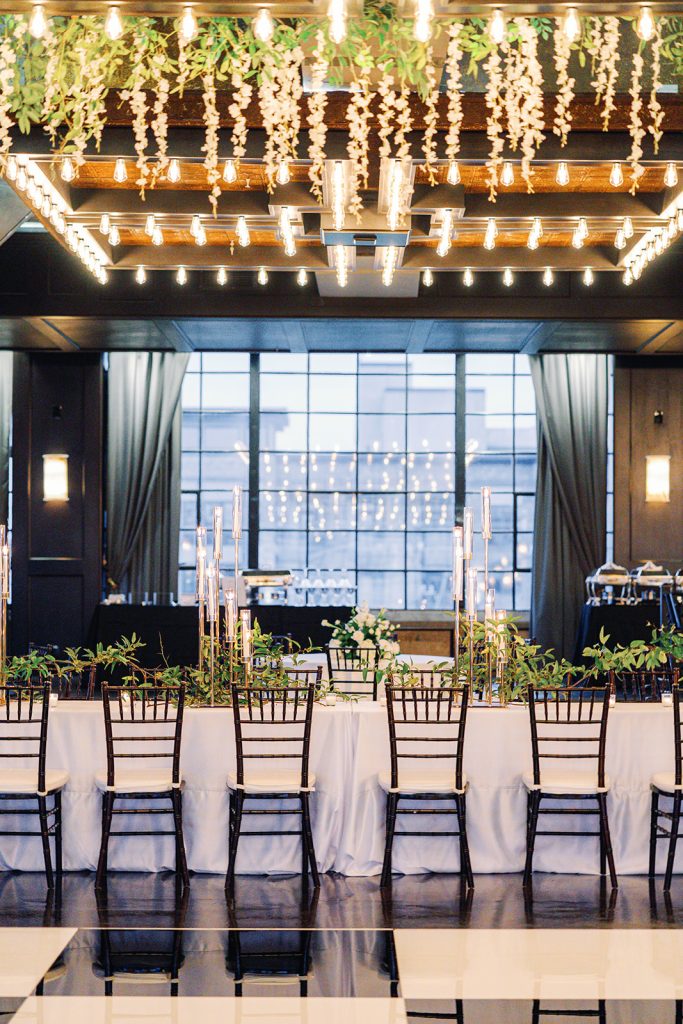 Hannah & Tyler’s wedding was a stunning fusion of modern edge and timeless romance. Set against an industrial backdrop, their celebration was softened by lush white florals, cascading greenery, and gold accents that brought an air of refined elegance to every corner.