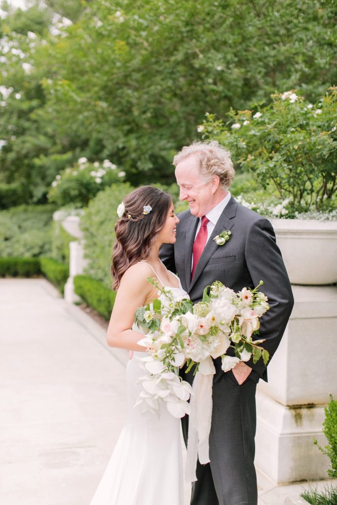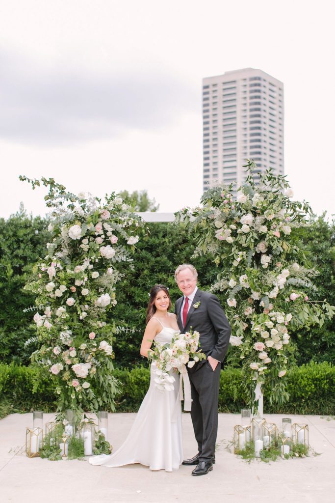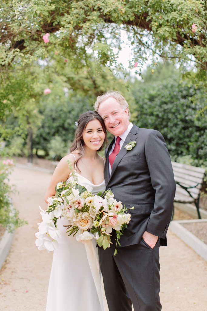 Janet and Geoffrey’s intimate garden corona wedding is full of some of the prettiest florals and blush details! Even though this celebration had to be re-planned just weeks before occurring, all of the components seemed to work perfectly together in such a simple way. The gorgeous florals from Jackie Trejo Floral Design instantly caught our eye, and we haven’t stopped dreaming about these gorgeous blooms since! Subtle pops of gold throughout this scene contrast beautifully with the lush greenery of this garden wedding, adding in a hint of metallic that we always love. The pure joy between this corona couple is so evident, and Mustard Seed Photography captured their love so perfectly! Scroll to see the stunning floral design that we instantly fell in love with in this intimate garden corona wedding. Cheers to the Knights!