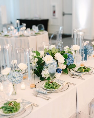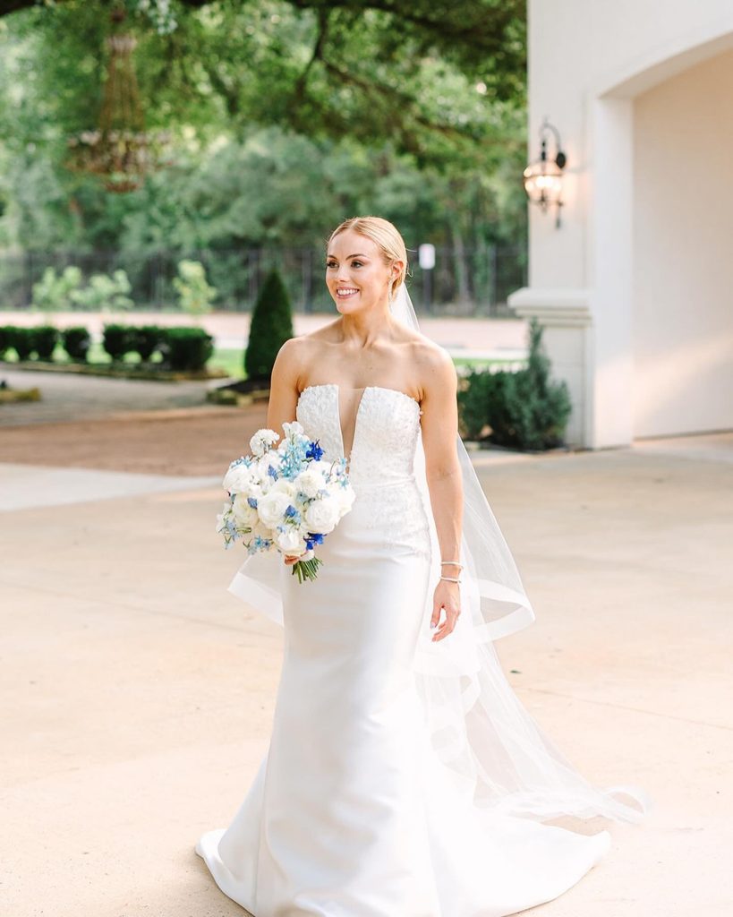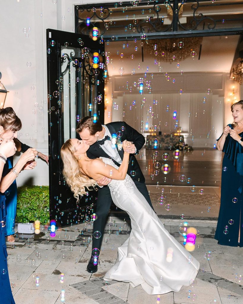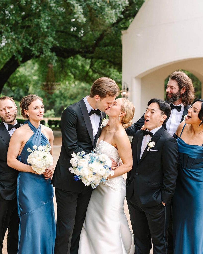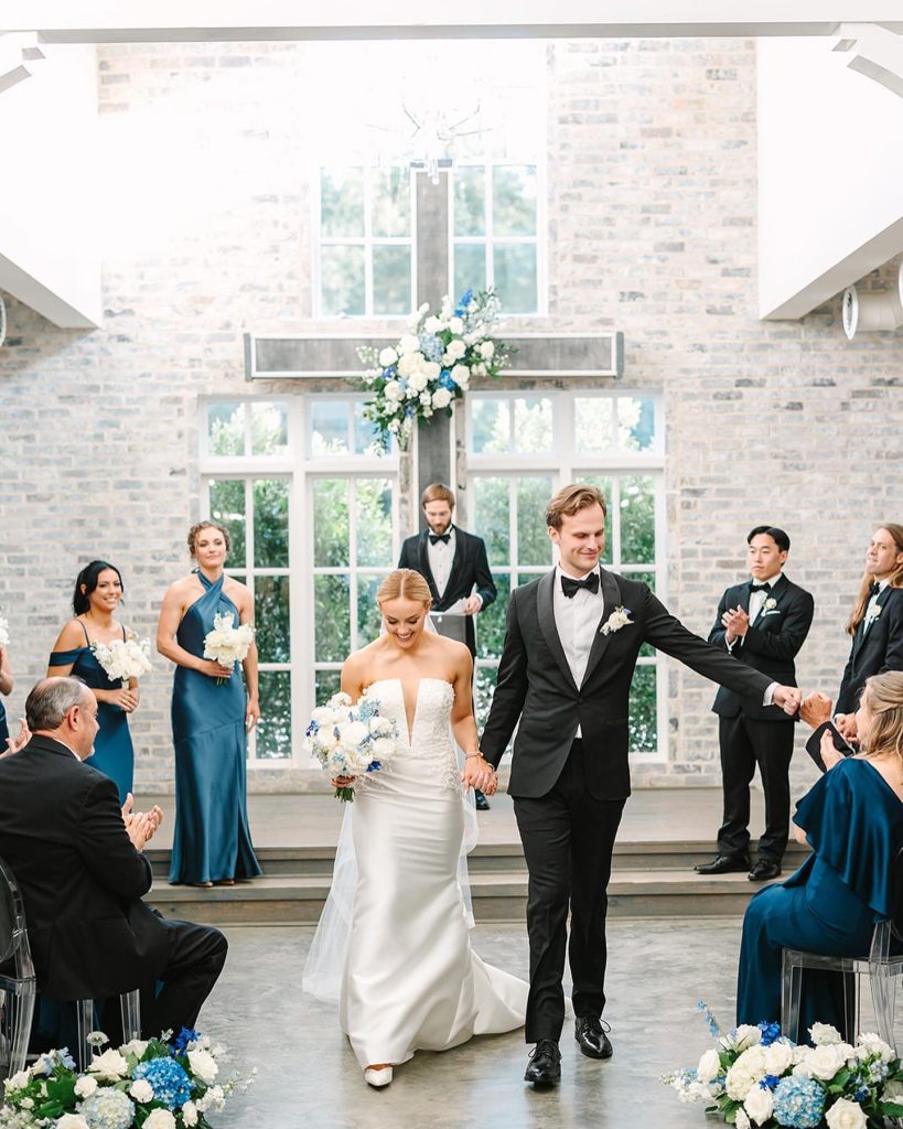 Introducing Mr. and Mrs. Milstead! Eva and Luke had a beautiful wedding at The Peach Orchard, where vibrant pops of blue and stunning flowers from Unforgettable Floral brought their day to life! Etoilly Artistry made Eva’s hair and makeup absolutely perfect. Bites from Cafe Natalie, such as pulled pork tostadas, and live DJing from J&A Entertainment kept everyone full and having fun.