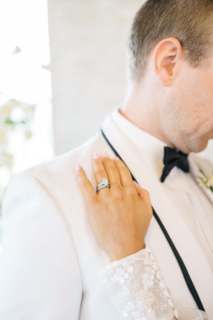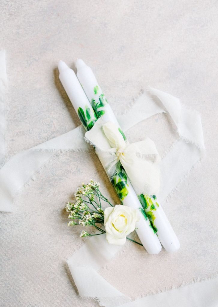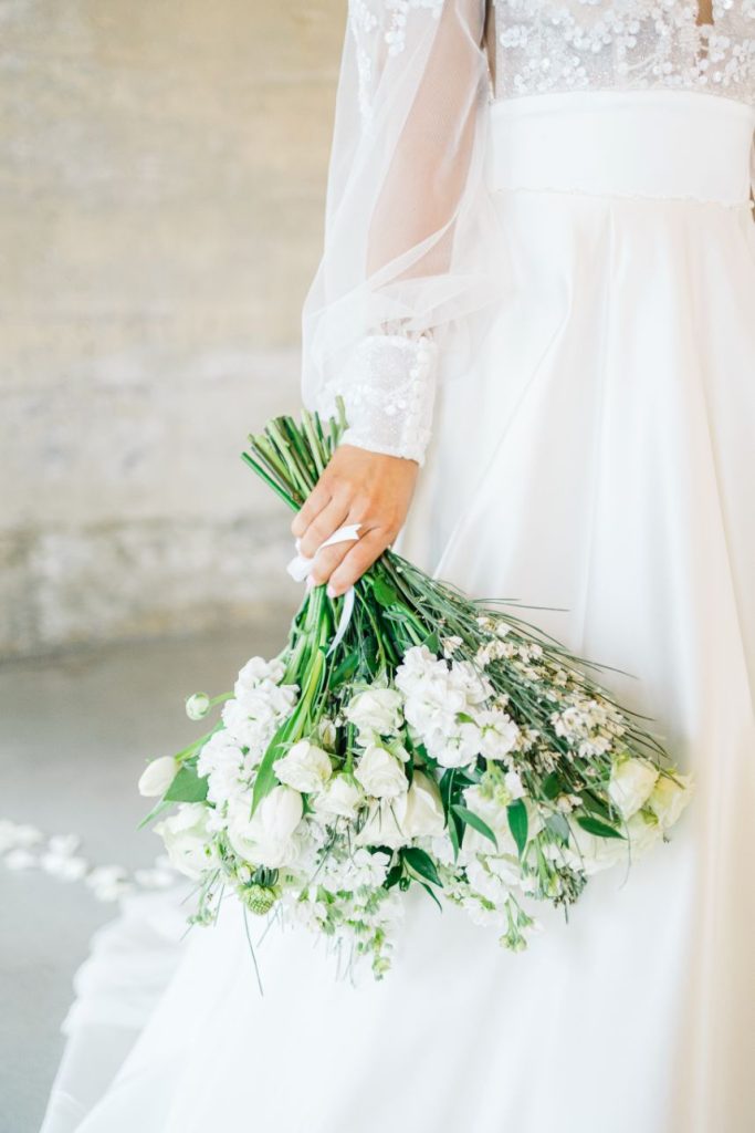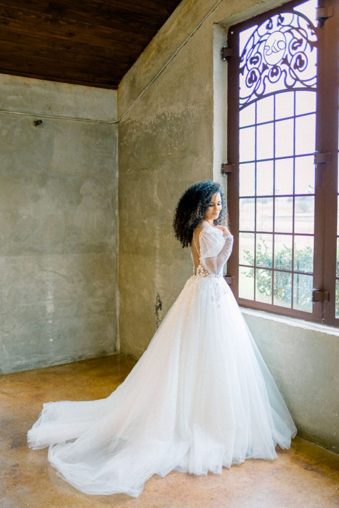 If Kourtney and Travis were married in the opposite color scheme, it might look a little something like this light and airy white Italian inspired wedding shoot! Designed and styled by Houston planner Riss Creations, these styled wedding scenes unfold in a tale of romance that seems to take place in the Tuscan countryside despite its Texas setting. All around, multiple stunning models showed off stylish wedding gowns from Wanderlust Bridal along with accessories that make our hearts sing while artisanal details like leafy taper candles and a champagne bottle beautifully hand painted by Brushed Script seal the deal with their intricate inclusion.