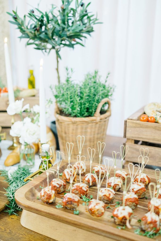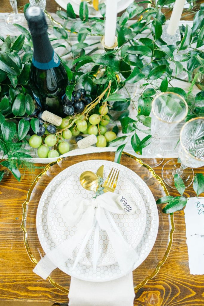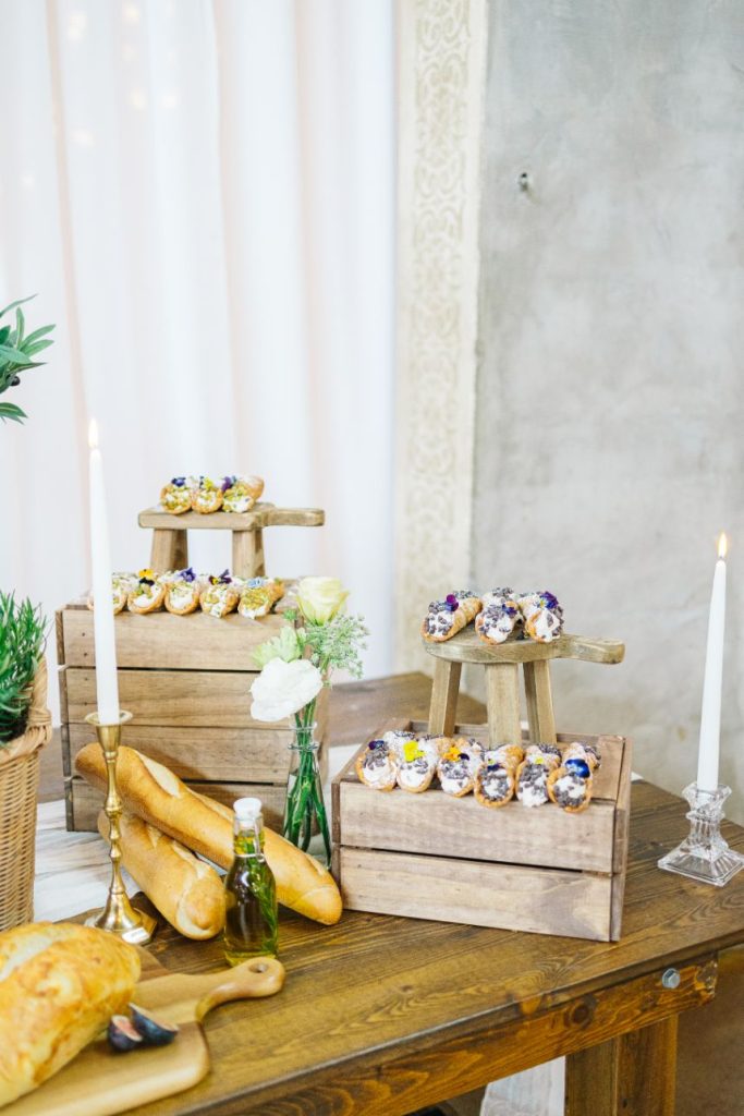 A traditional Italian inspired wedding calls for long tablescapes lined with vino, wine grapes, candlestick holders and other decorative rentals from Decor by Dulce as well as a tiered altar display that takes our breath away. Say “I do” in front of this unique yet organic ceremony setup before enhoyihng a bread spread in addition to other Italian hors d’oeuvres provided by the top-notch culinary services of Hedrick’s Catering and Events. There isn’t an element in it that doesn’t do this Italian inspired wedding shoot justice. Explore all the photos from it in the gallery down below!