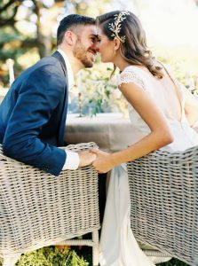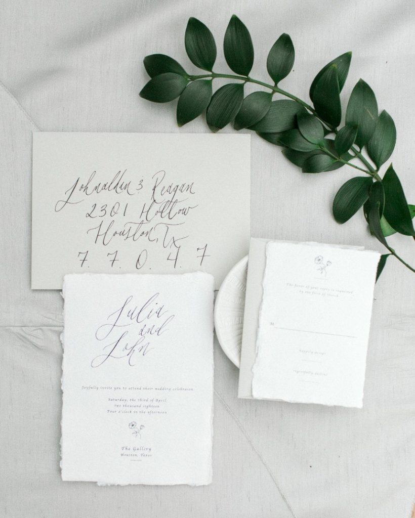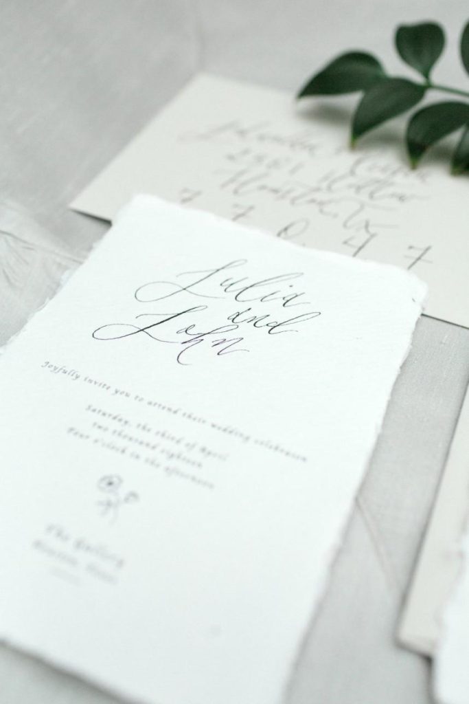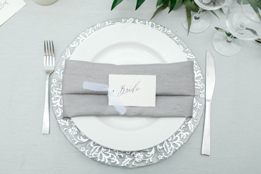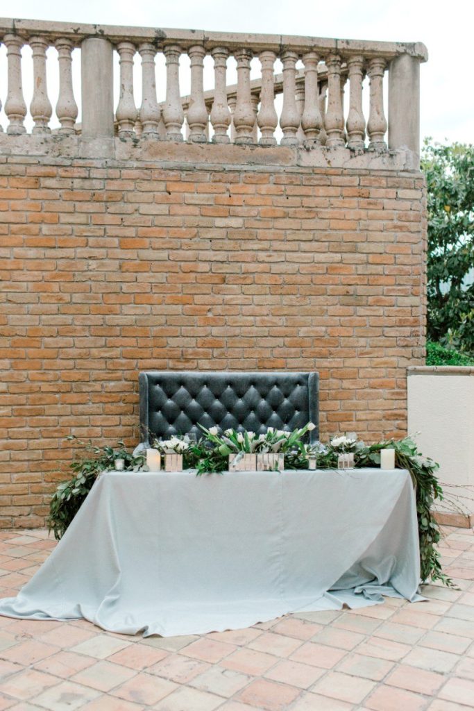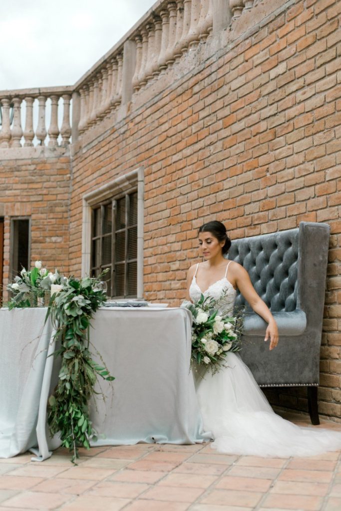 Ivy and vines, stately columns and sophisticated romance: this Italian villa-inspired styled shoot evokes emotions of wanderlust, nostalgia and love! Greenery galore and terracotta brick walls transport us to a world across the sea, with modern touches found in contemporary details. Gorgeous calligraphy on crisp white paper, a tall dark gray settee and contemporary table settings modernize this old-world Italian villa-esque setting at Houston’s The Gallery. Scroll down to see the photographer’s thoughts about the shoot, and take a look at the gorgeous photos below! Cheers!