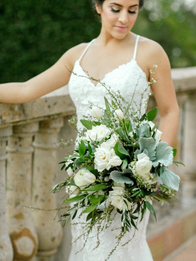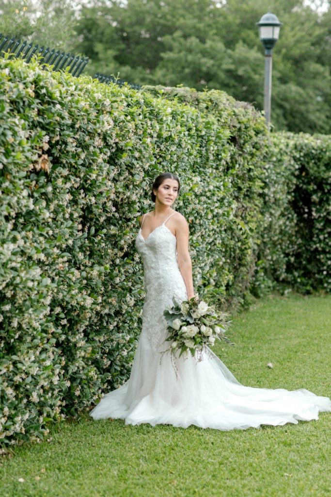 From the photographer: “The Gallery in Houston has a wonder quality about it that makes you feel like you’re in an Italian villa instead of in the middle of Houston. The romance that can be felt while touring around Italy made perfect inspiration for this beautiful styled shoot. Vanessa did an amazing job portraying the spirit of the shoot in a beautiful dress from Shade of White, while holding another beautiful creation from Poison Ivy Floral. The delicate nature of the stationary suite that Memory Lane Paperie put together was my favorite part!”