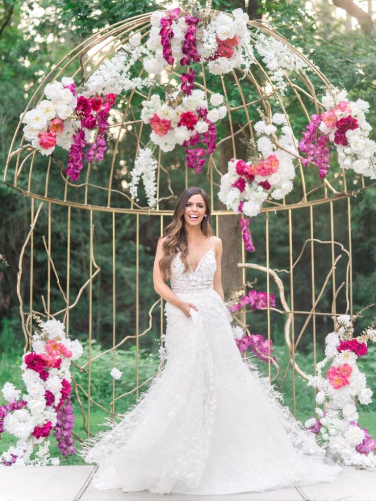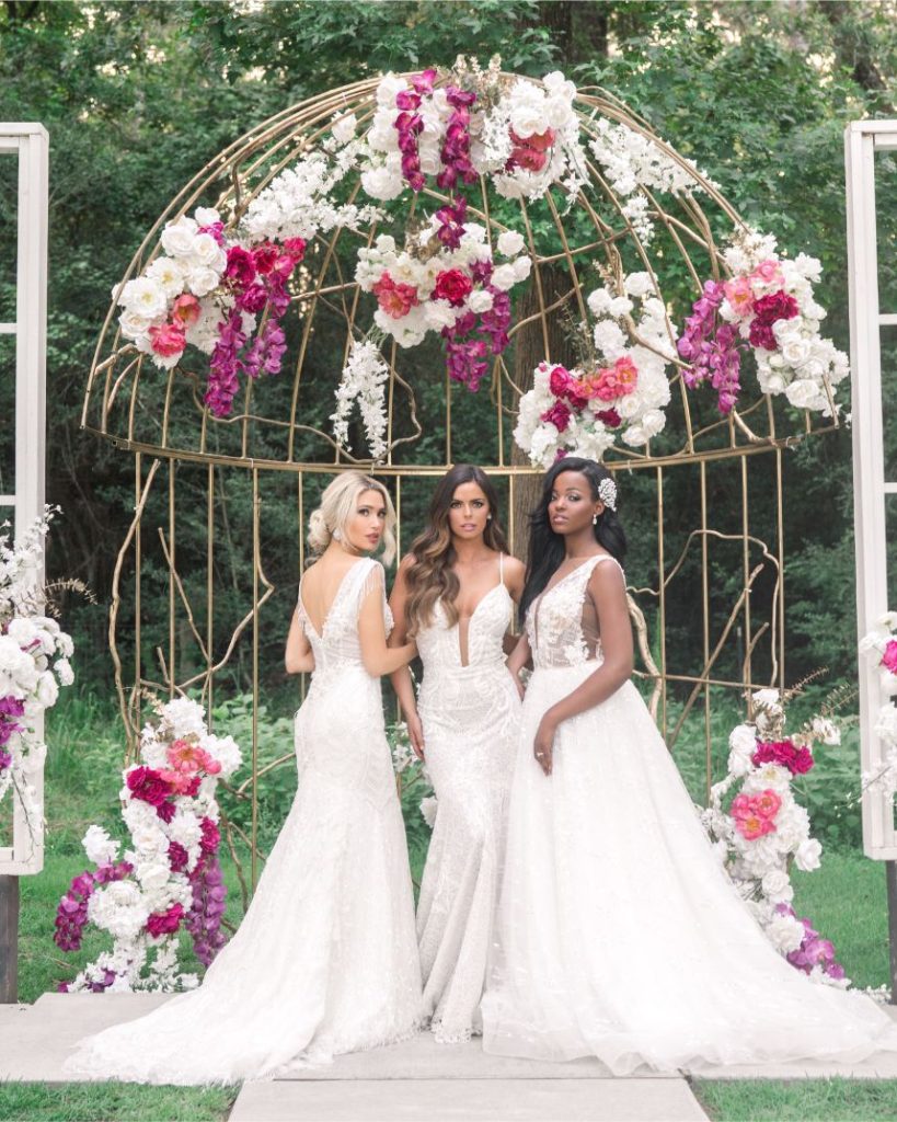 From the planner, Lexi McWhinney of The Savvy Event Consultants: “This shoot was inspired by every girl living or growing up in the Houston area that dreams of her wedding day, and when I say every girl, I mean Every Girl. Houston is the most diverse city in the United States, and I am proud to say that my clients reflect that diversity. Too often, young women here begin planning their weddings feeling both overwhelmed and disappointed by the inspiration out there because they cannot picture themselves in the shoes of the brides on the covers and pages of the popular magazines and blogs they see. No matter her skin color, hair type, stature or overall personal style, every young woman should be able to find inspiration for her perfect day. This shoot was designed to showcase brides of different ethnicities and body types set against a gorgeous wedding venue that can give us farmhouse, offbeat and luxury vibes all in one place at the same time.”