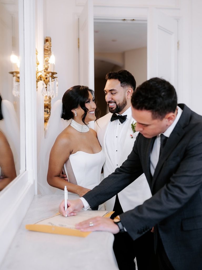 With Arianna Giselle Events leading the day and J&D Photography behind the lens, every detail felt intentional, from the pearl-detailed accessories to the pink-tinted florals that lined the aisle and reception tables!