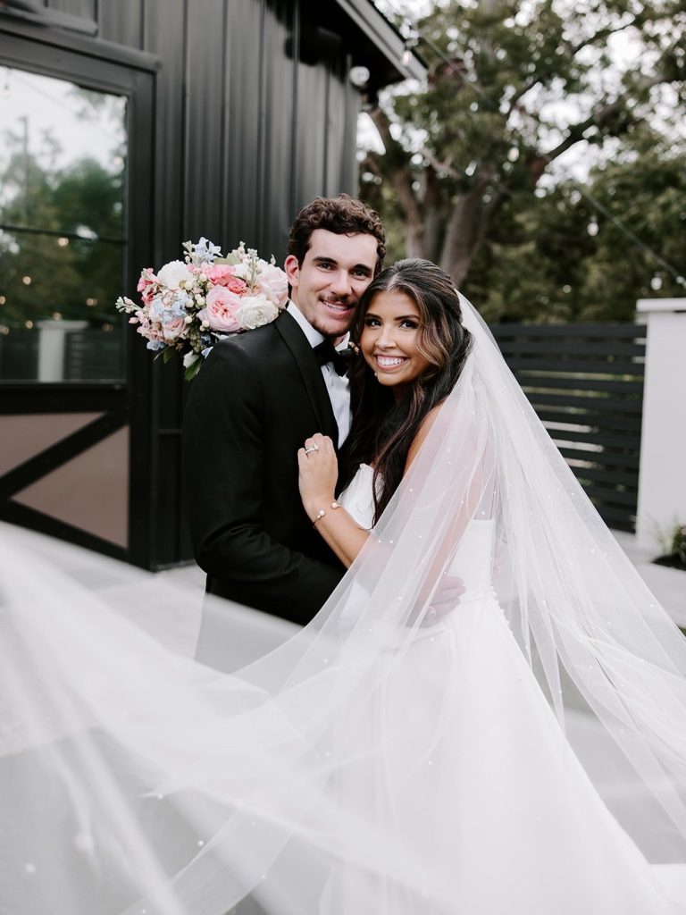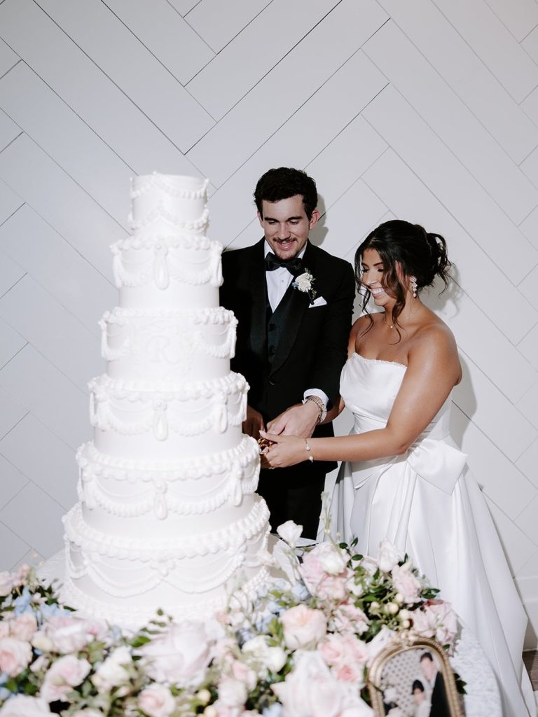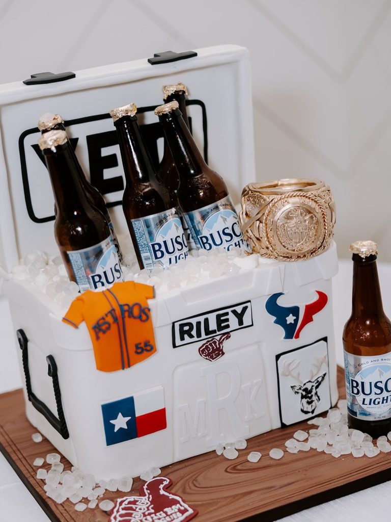 Kaitlyn & Matthew’s wedding day was filled with timeless style and thoughtful details. From their elegant celebration at Stables on the Brazos to the soft blue, pink, and gold accents woven throughout, every piece felt intentional. Kaitlyn looked stunning in her strapless gown from Brickhouse Bridal, and the cakes by Cakes by Gina tied it all together—from a classic six-tier, vintage-piped wedding cake to Matthew’s groom’s cake filled with personal details!