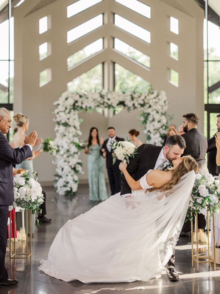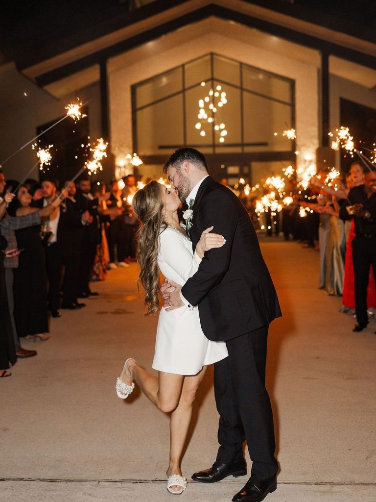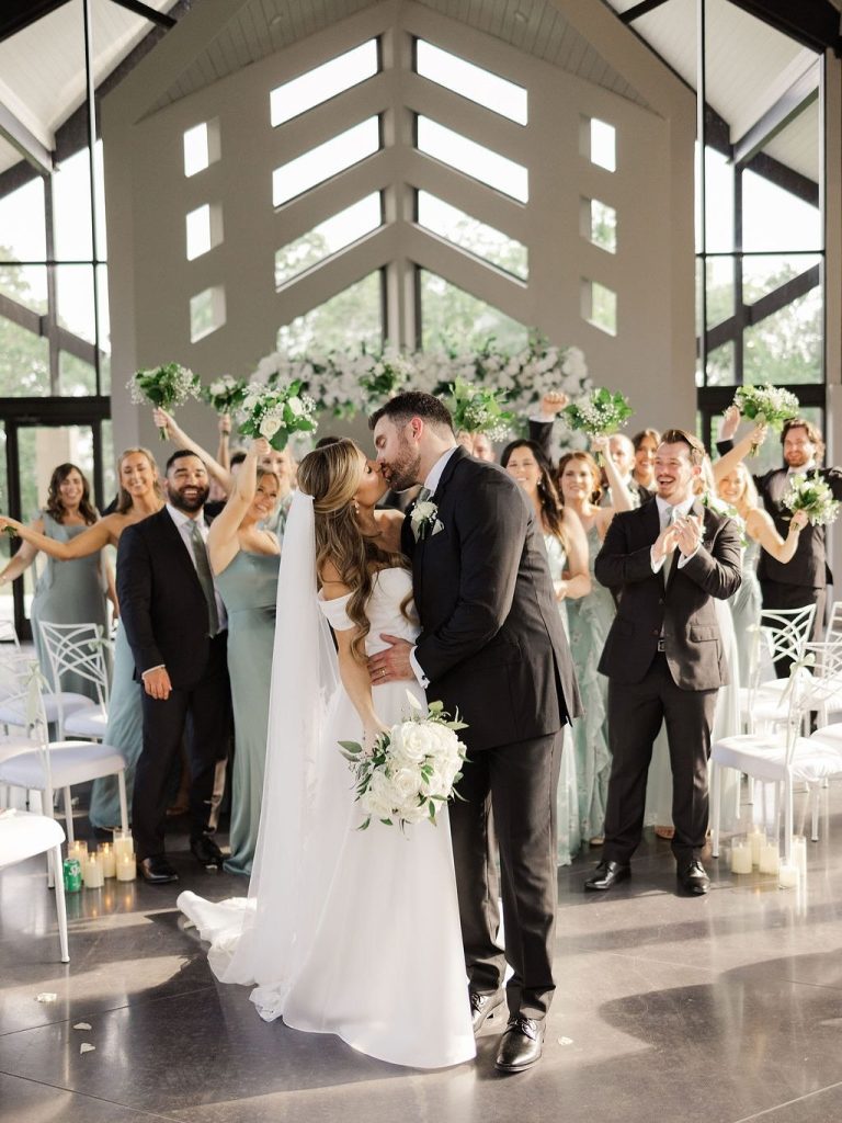 Kelli & Nathan’s wedding day featuring lush white florals, soft sage details, and a ceremony space that felt like a chapel amongst the trees. Sage Rochelle Photography captured it all beautifully, from their first kiss as husband + wife to the sparkler send-off at the end of the night!