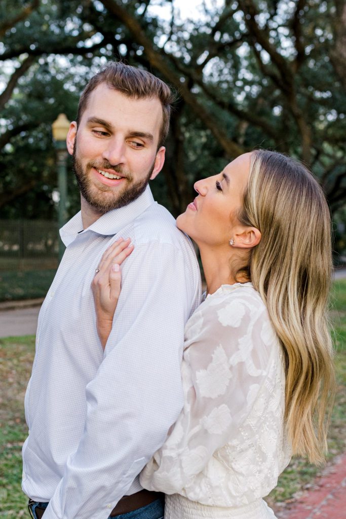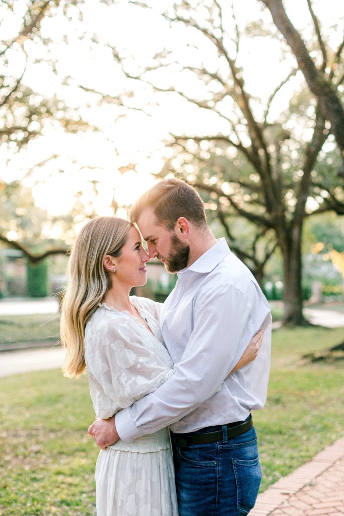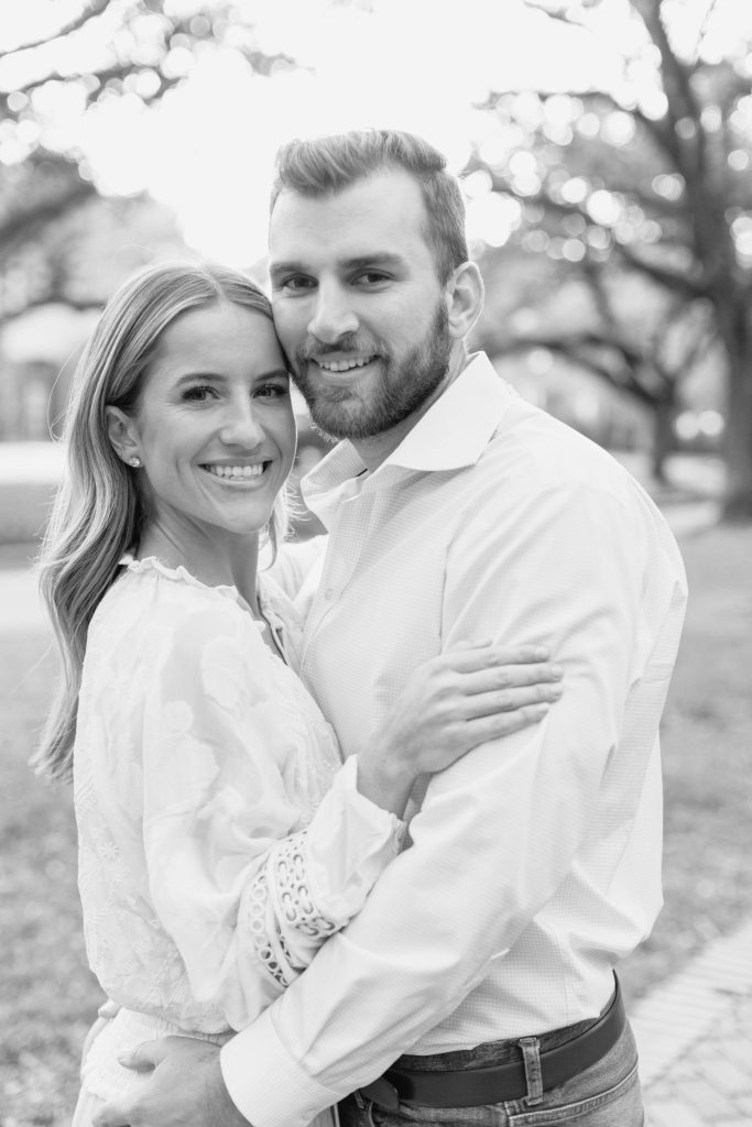 Experience the love and happiness of Kendall and Teagan in their Houston engagement shoot with Courtney Tate Photo. These two lovebirds have quite the history! The couple grew up in the same neighborhood in Richmond, Texas. Due to their families being close friends, Kendall and Teagan went on summer vacations and spent weekends together while growing up. Kendall and Teagan remained only friends until 2016, when Kendall moved back home after living out of state for five years. Absence must make the heart grow fonder because, after Kendall’s return, the two quickly grew feelings for each other. Teagan proposed in Kendall’s parent’s backyard with lights spelled “MARRY ME?”. Of course, Kendall said “yes” to her childhood friend turned fiancé!