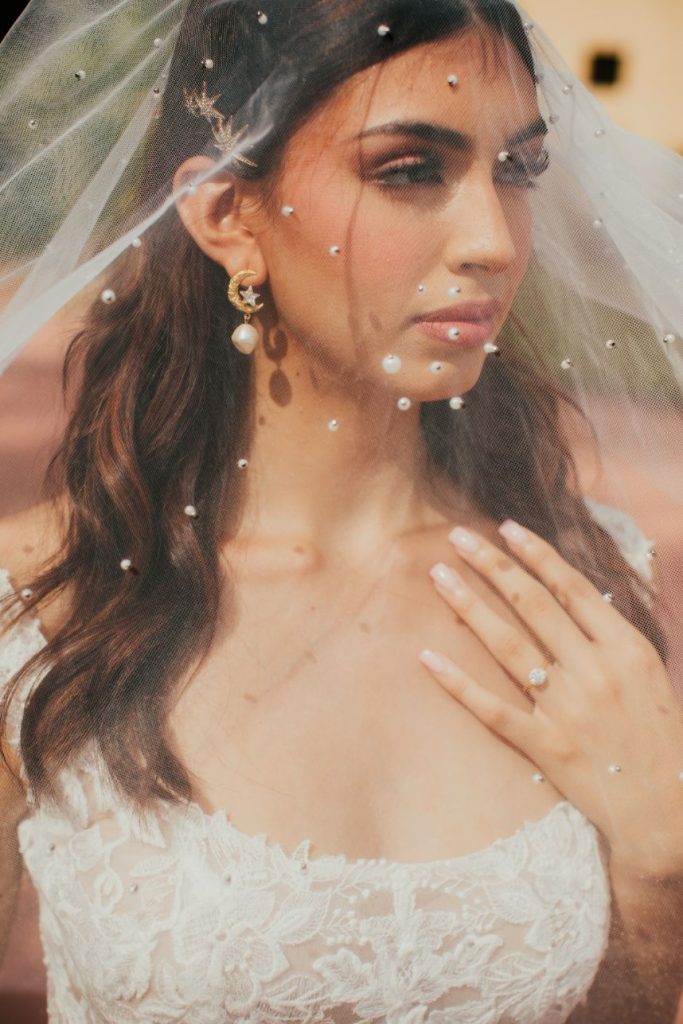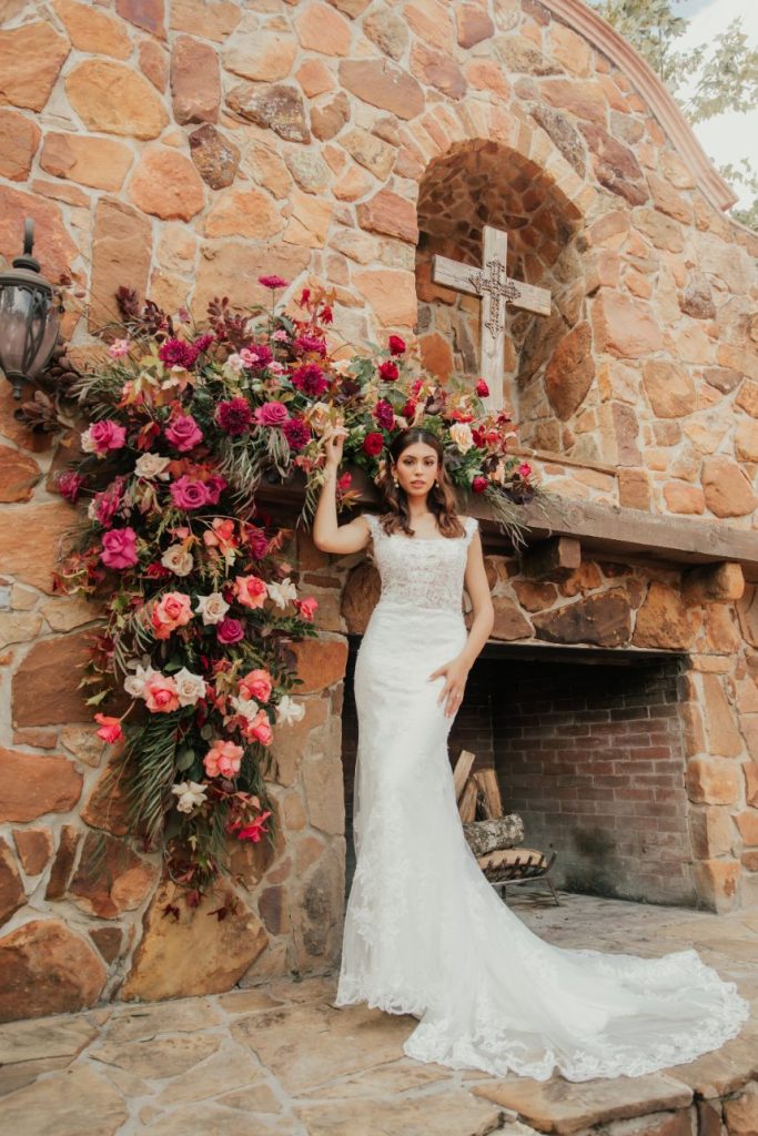 Introducing our newest fashion editorial we’re simply over the moon for – La Luna: a modern collection of Spanish inspired wedding gowns from some of the finest Houston fashion purveyors showcasing the hottest designer bridal gowns this season has to offer! Captured in exquisite scenes by Tiny Mum Photography all around the romantic setting of Madera Estates, gowns in lace and satin and more look divine surrounded by wild-edged florals by Cali and Bloom. In every photo, this bride models looks completed by fine jewelry from Kaira as well as hair and makeup styled by the artists of Glow + Grace Artistry to best suit each unique bridal gown.