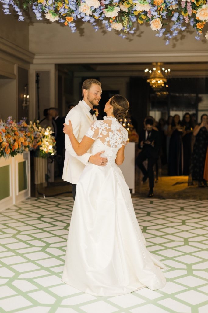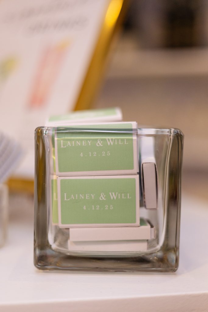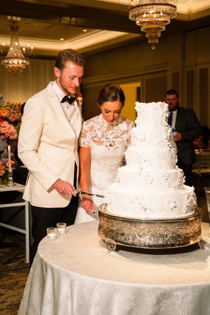 Lainey and Will’s wedding was the perfect blend of classic romance and refined Southern charm. The day unfolded with effortless grace, from Lainey’s lace high-neck gown, to the couple’s heartfelt vows surrounded by family and friends. After the ceremony, guests were welcomed into a candlelit reception filled with soft florals and golden details. The couple shared their first slice of a stunning white tiered cake adorned with delicate floral detailing before dancing the night away beneath glittering chandeliers. Every moment showed their sweet connection and genuine love for each other; the perfect start to their forever together.