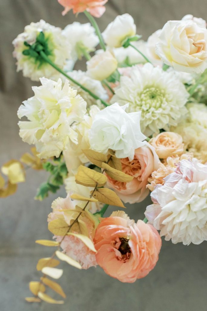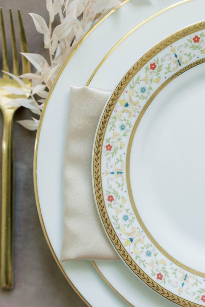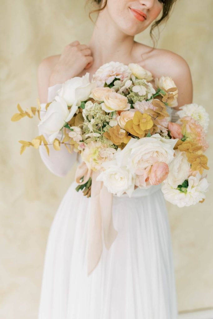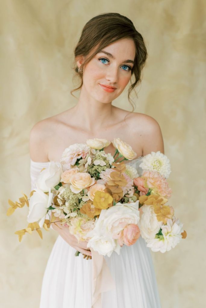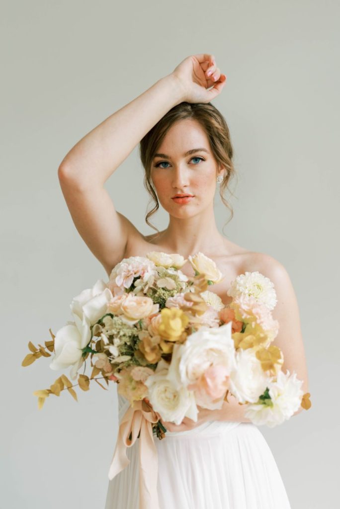 Oui, s’il vous plaît! In French, Le Bon Ton translates to “in good form,” and we think this Parisian bridal inspo dripping with decadence in shades of apricot and dusty rose is just that! Perfect form, in fact. Dreamt up, designed and styled by Patti Darby Photography, the sophisticated peachy palette accented with ivory and gold looked exquisite inside the luxurious Baroque interiors of The Creative Chateau, while linens and place settings from Party Time Rentals elevated the tablescape to that of a romantic restaurant along the streets of Paris. Meant to inspire those who lean toward whimsical, romantic aesthetics, this bridal scene features gorgeous haute couture-esque gowns from Brickhouse Bridal and effortlessly easy and dewy hair and makeup by Hey Lovely.