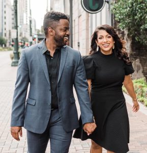 When we got to our destination he got me out of the car and walked me up an inclining surface (what I later found out to be the top of a parking garage). Matt pulled off the blindfold and immediately, I knew, and I started bawling, attacked him and kissed him, all not hardly even noticing the helicopter behind him. When I finally got myself together, he got down on a knee and was so calm and put together. He told me he was confident that I was his soulmate and that I completed him, followed by “Will you marry me?” opening that little box. I was ecstatic and emotional and overwhelmed and filled with such joy. Afterward, we popped some champagne, the photographer he hired snapped some more photos and we got suited up to take a helicopter ride around Houston. When we landed back on solid ground, I still felt like I was floating. We journeyed back to our place to have dinner and call our family and friends and let them know the amazing news, but the surprises weren’t over. Matt walked me out to our backyard that he had decorated with a blanket, rose petals, a marquis “Marry Me” sign and wine. From there, we shared the news with our family and friends! Just writing this out and reliving this special day made me so giddy. Matt is the most thoughtful and selfless man, and I can’t wait for him to be my husband!