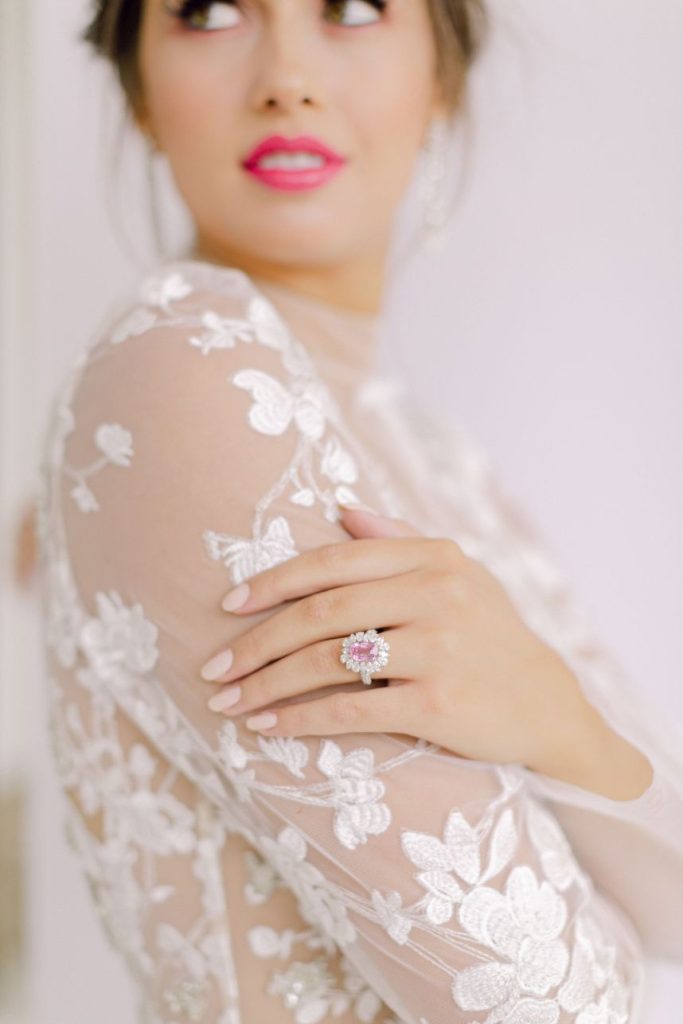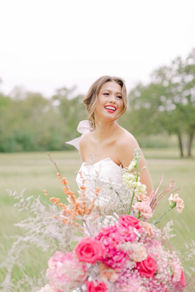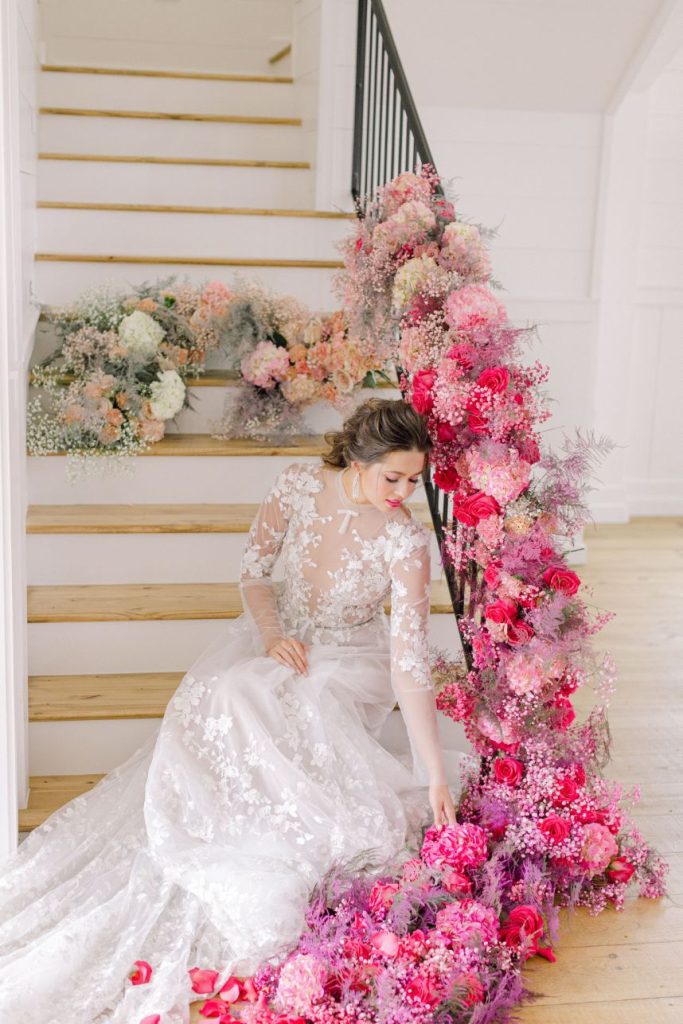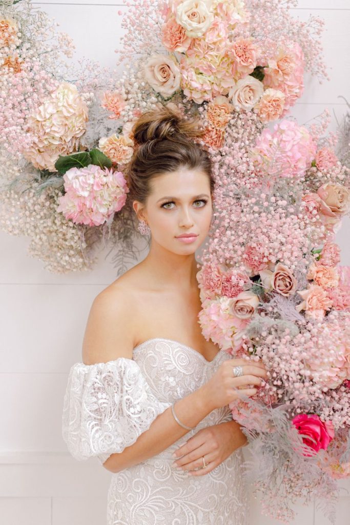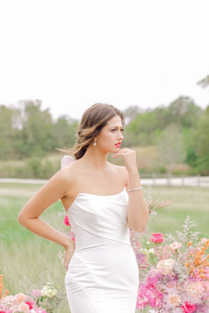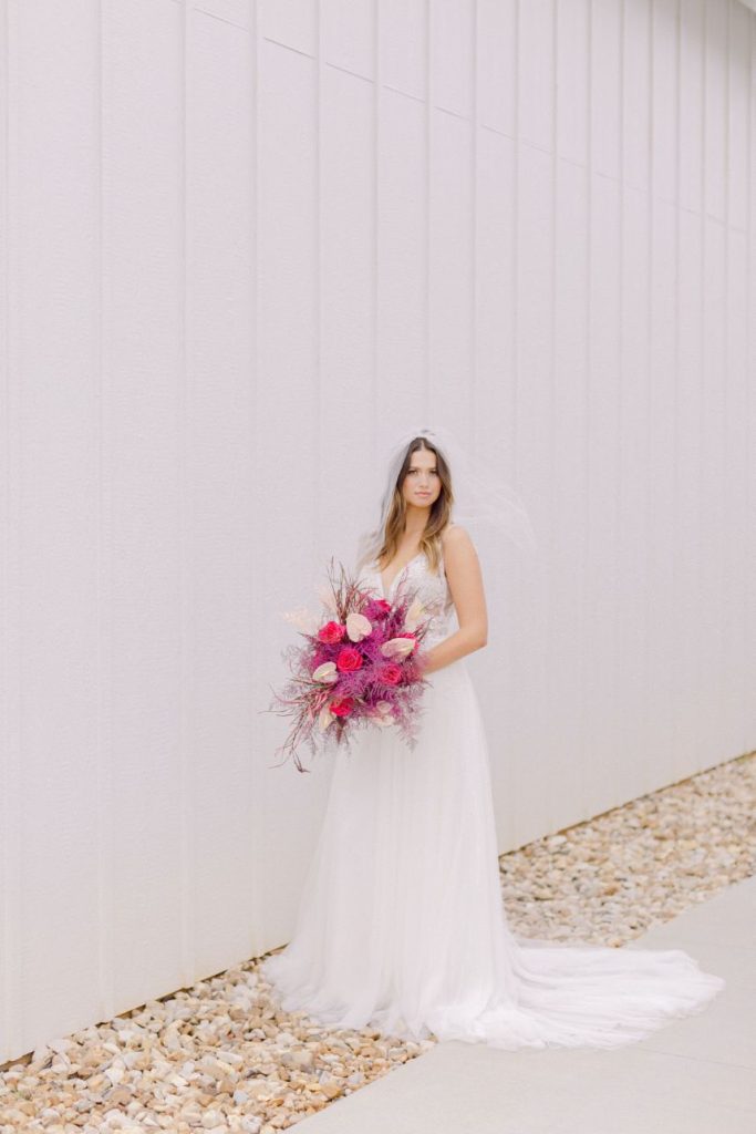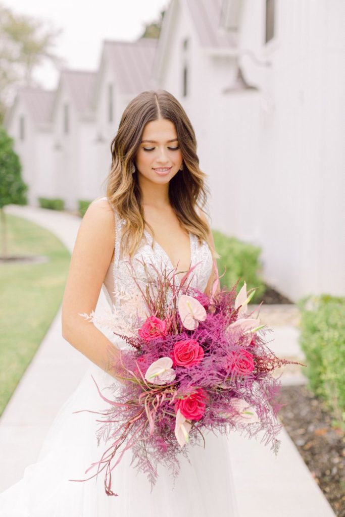 Our latest editorial – Lover – debuts a collection of gowns for the modern, ultra-femme bride whose cult classic favorite is Pretty in Pink (but maybe with a touch of Runaway Bride and a splash of Steel Magnolias) and always plays Taylor Swift on her commute. Our powerhouse team of vendors came together at Arrowhead Hill to put together some incredible contemporary looks flanked by sprays of the most gorgeous blush and magenta florals courtesy of The Tallest Tulip. Butter Artistry‘s hair and makeup transformed each look into a complete showstopper, with modern hairstyles, fresh, dewy makeup and the occasional POP of the prettiest pinks. Fine jewelry by Kaira put the icing on the cake for each and every gown. Captured by Leslie Margarita Fine Art Videography and Mustard Seed Photography, these bright and beautiful styles are sure to be T-Swift approved. Scroll through and swoon!