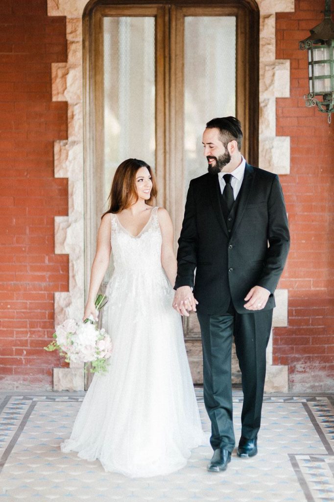 From the planner: “As romantic as it sounds, you do not have to run away to Vegas in the middle of the night and be married by an Elvis impersonator. Eloping can be tasteful, meaningful and executed in a loving fashion. Find a location that sets the tone of your big day. For this styled shoot, I picked Moody Mansion in Galveston, Texas. This historic venue is full of old world romantic charm and the perfect place for a private and intimate elopement. Make your elopement feel traditional by incorporating some traditional bridal images. It can bring a familiar wedding feel to your elopement! Talk with your photographer to make sure they help you capture these intimate details such as your ring, your shoes, the cake and dress details! Remember what it’s all about: capturing the pure moments of the two of you on this special day!”