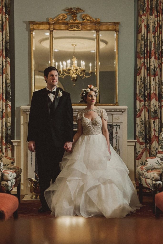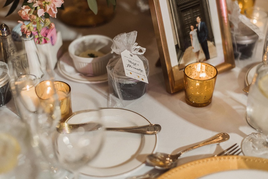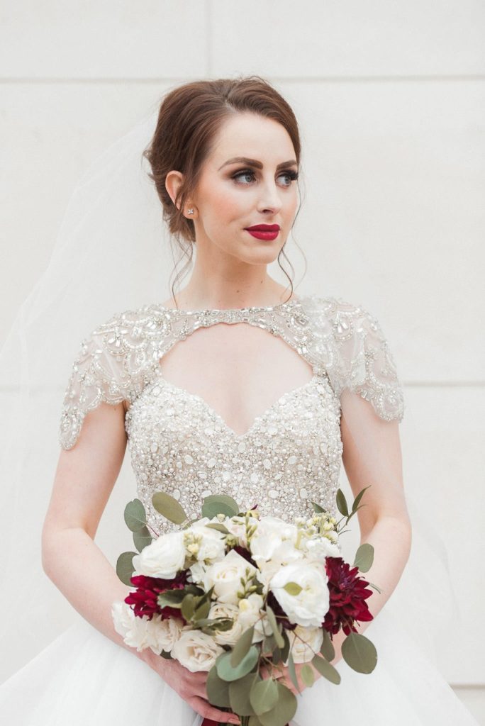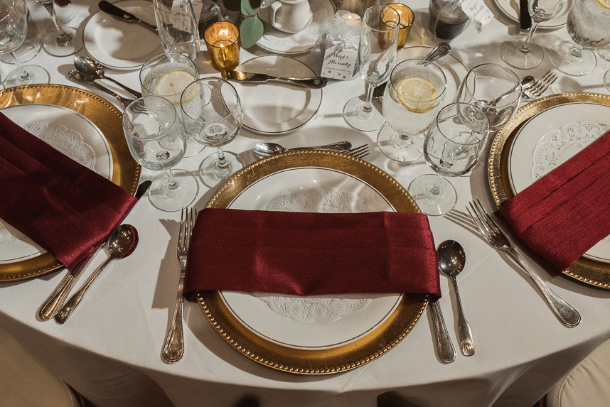 Alexandra and Ward’s luxe vintage wedding included nods to their families, their personalities and… their favorite jam! The dark red color scheme was inspired by the homemade blueberry jam favors the couple made from scratch for each of their guests to take home, and the touches of wine, maroon, plum and gold lent themselves perfectly to the luxe vintage feel of their classic and romantic affair planned by Daniella of The Added Touch. Alexandra donned a classic dark red pout and updo from Blushworthy for a timeless look. Guests danced the night away, thanks to LG Entertainment, before Alexandra and Ward left in a classic Rolls Royce Phantom! Cheers to the happy couple!